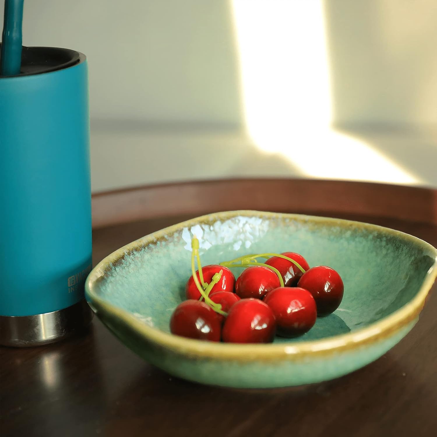 - [Artisan Design] The free-form edge ceramic bowl is an exquisite artistic decor. The magical green glaze with exquisite details is full of beauty of the nature and geometry. It is a perfect accent piece that fitting well into a modern or vintage décor style. Suitable Gift for Weddings, Party and Special Occasions.