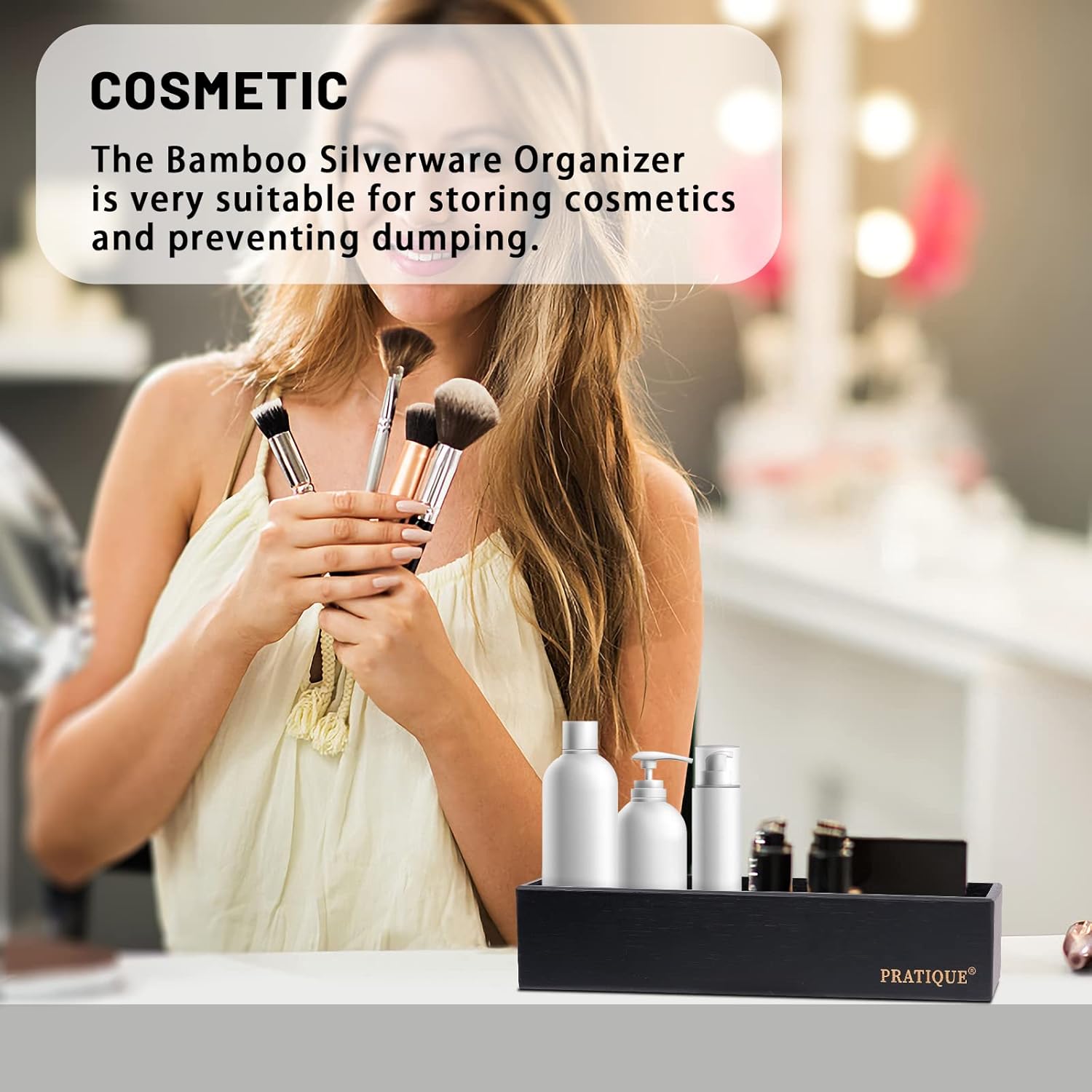 - 【PRACTICAL STORAGE SPACE】PRATIQUE drawer organizer can reduce clutter and avoid desperately searching for lost items. Ensure drawers in the kitchen and beyond are neat and organized.The flatware organizer is made of bamboo, which has a neutral light wood color and it will look beautiful as your kitchen, closet, garage and office drawer.