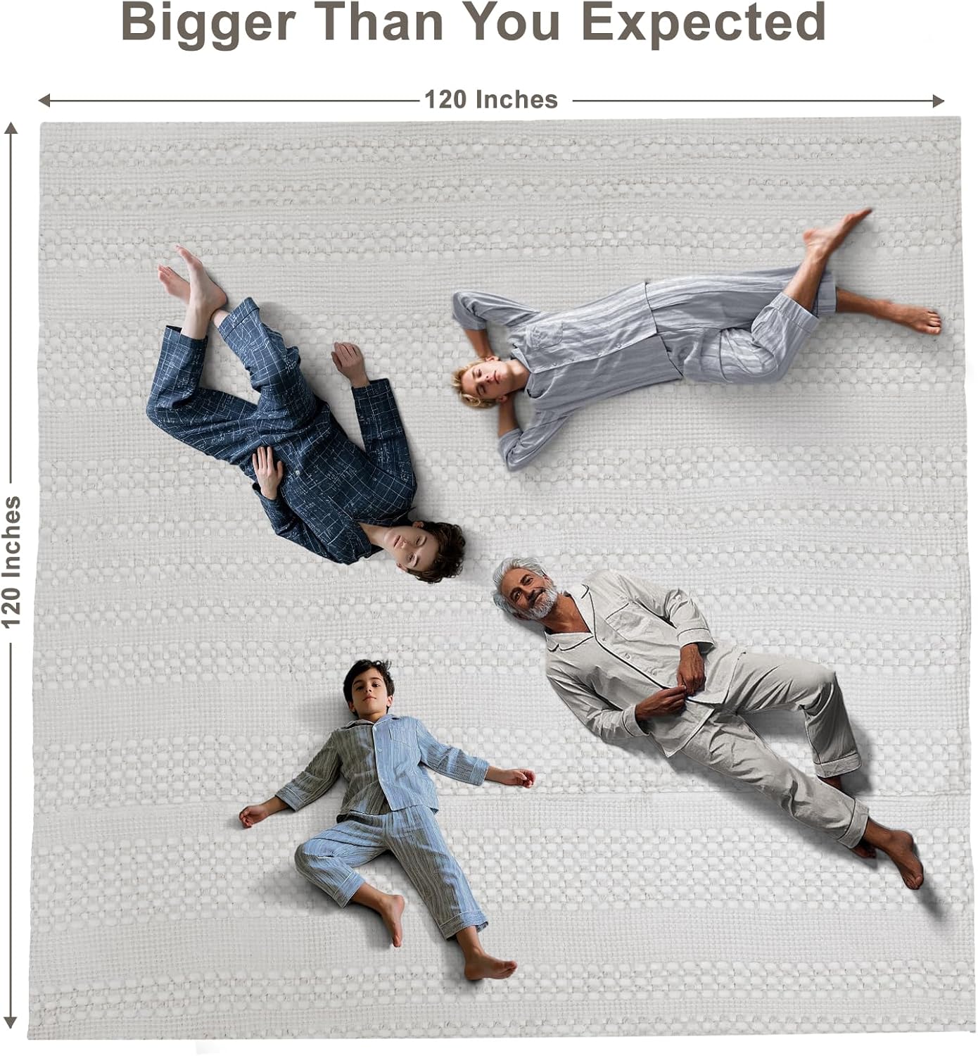 PHF 100% Cotton Waffle Blanket Oversized King 120"x120", Lightweight Breathable Extra Large 10'x10' Summer Blankets for Bed, Giant Big Luxury Aesthetic Woven Bedding for Home Decor, Light Grey