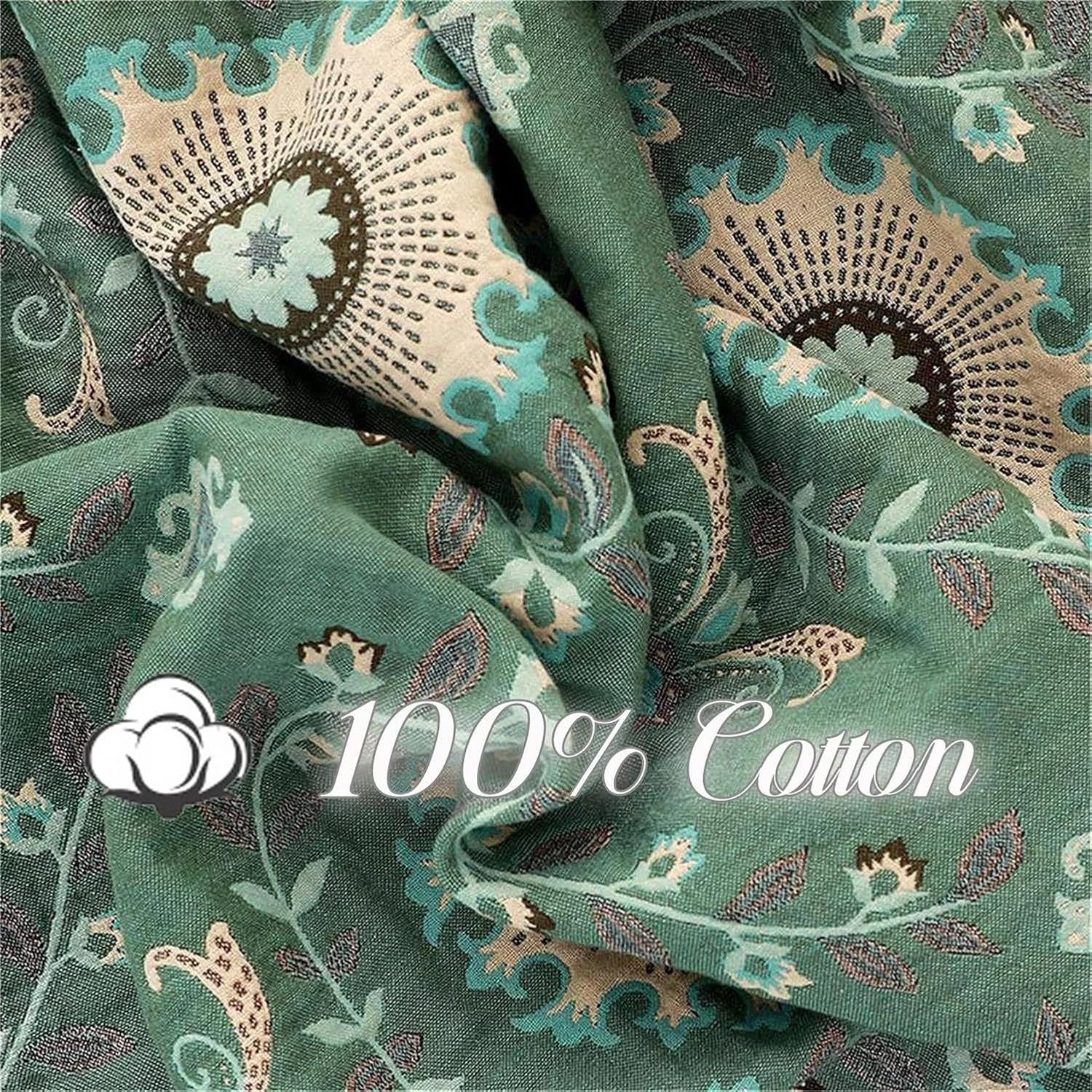 MSGKV Boho Throw Blanket for Couch Bed 100% Cotton Blankets Woven Green Blanket,Versatile Double Sided, Super Soft Warm Blanket 60''x 80''