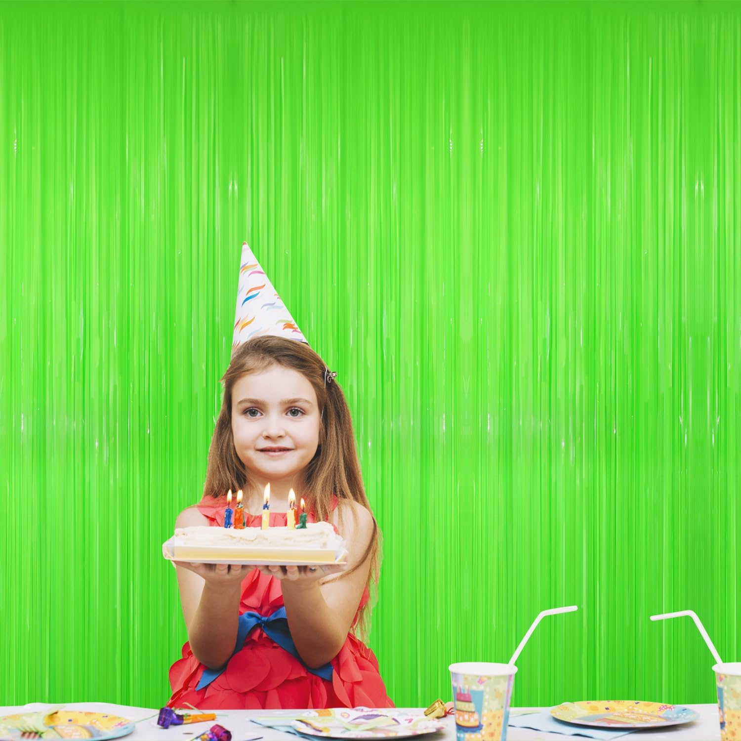 GOER 3.2 ft x 8.2 ft Party Backdrop Party Streamers for Birthday,Graduation,New Year Eve Decorations Wedding Decor(4 Packs,Candy Lime Green)