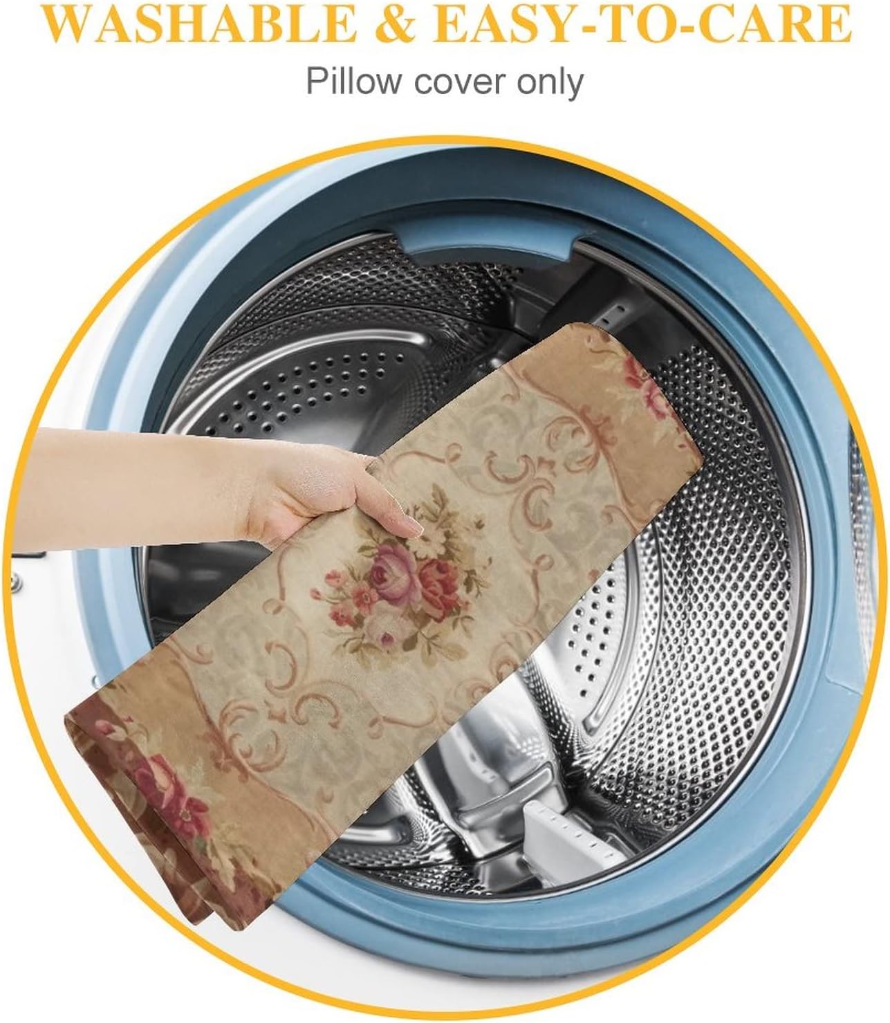 RURALS Antique Rose Floral French Aubusson Rug Decorative Pillow Covers Cozy Soft Throw Pillowcase Square Couch Cushion Cover for Home Decor Sofa Living Room Bed Car 18x18 Inch