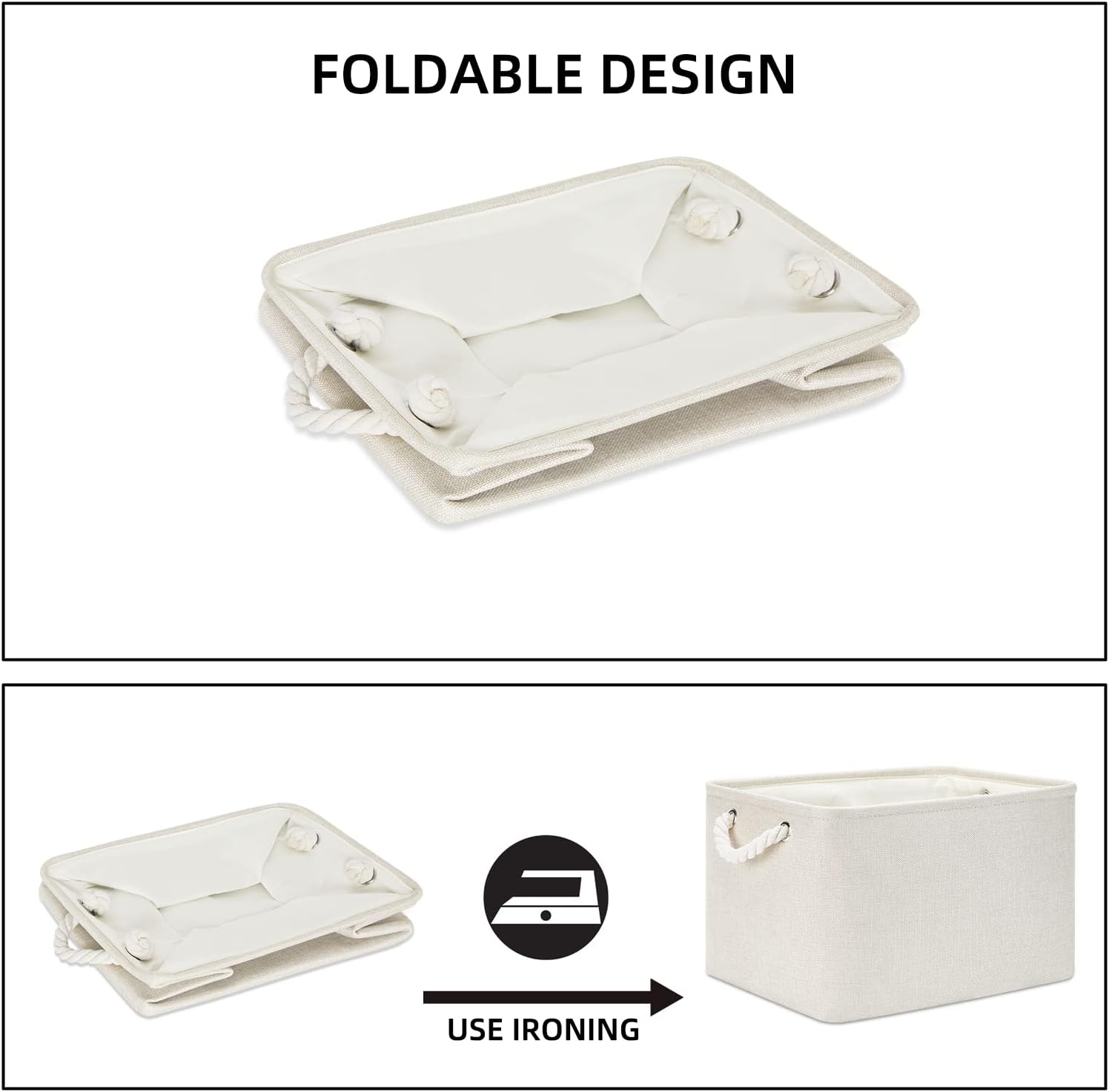 - Collapsible Baskets Set: Simply fold the canvas basket down flat for space-saving storage when not in use or when needing to transport. We shipped them in a folded package, if it doesn't stand up very well when you receive it, you can fill the large basket with clothes or blankets, it will recover gradually. If you want the basket to stand up quickly, you can use an iron to iron out the creases