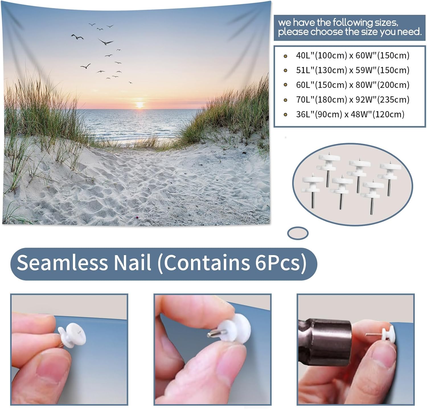HVEST Ocean Beach Tapestry Wall Hanging, Sunset Seabird and Beach with Grass, Natural Landscape for Bedroom, Living Room, Dorm Decoration, 92.5x70.9 Inches