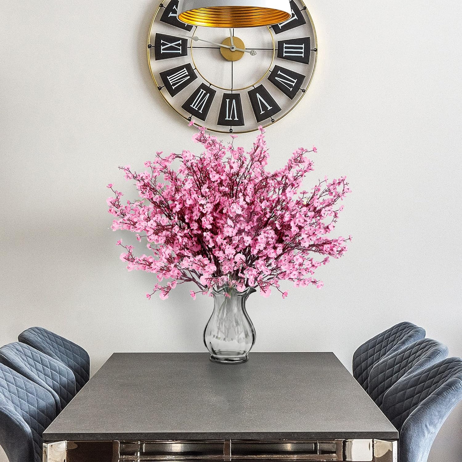 Sggvecsy 15 Pcs Babys Breath Artificial Flowers Gypsophila Bouquets Bulk Real Touch Fake Silk Flowers for Home Wedding DIY Floral Arrangement Kitchen Table Centerpiece Festival Decoration (Pink)