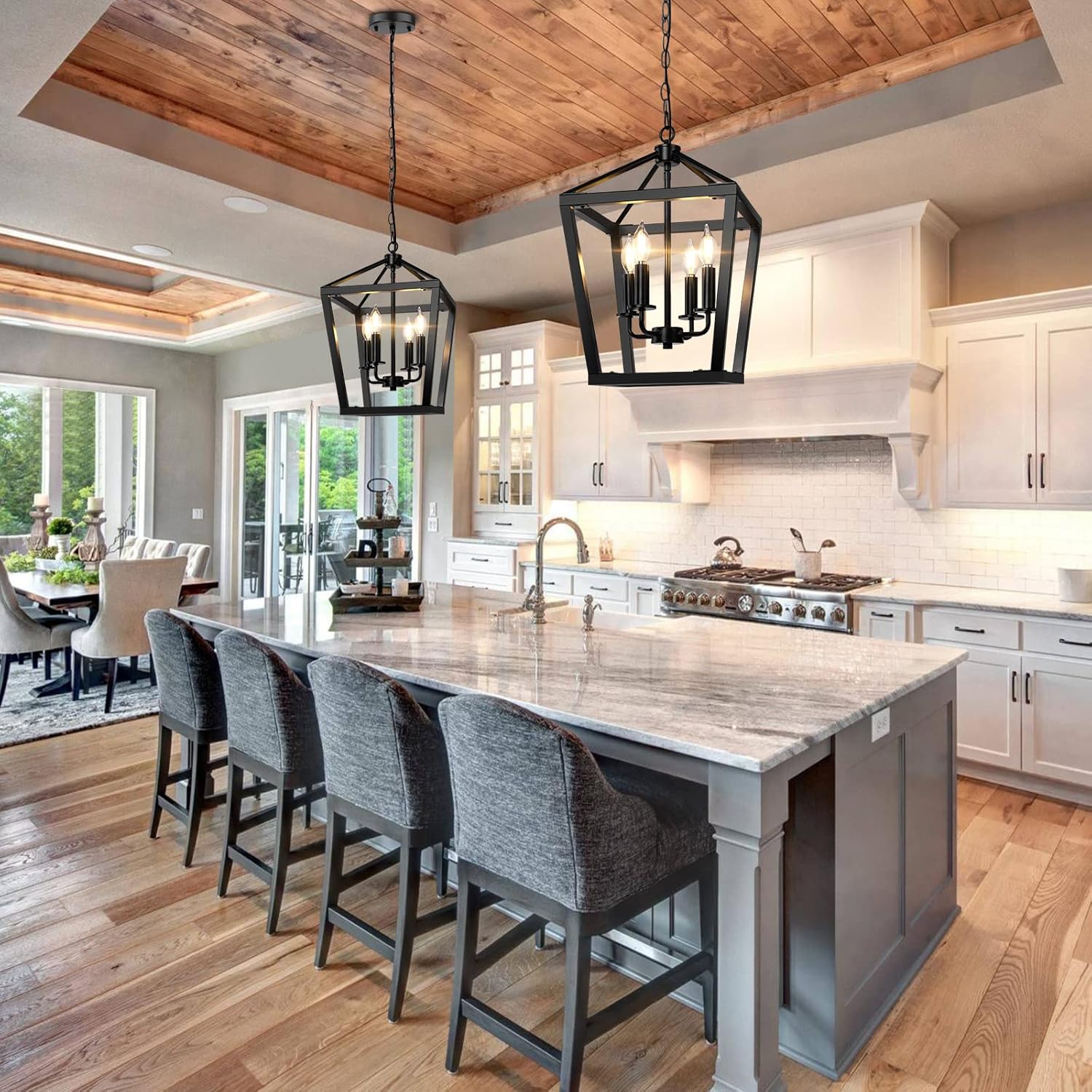 - ✔【Statement-making Light】The black chandelier with 4-light interior candelabra provides abundant light to your home while lending a rustic flair in an iconic lantern silhouette. With its dense modern farmhouse style, it is both a lighting fixture and a great decoration in any space like dining room, kitchen island, living room, bedroom, hallway and foyer. Great choice for your home decor.