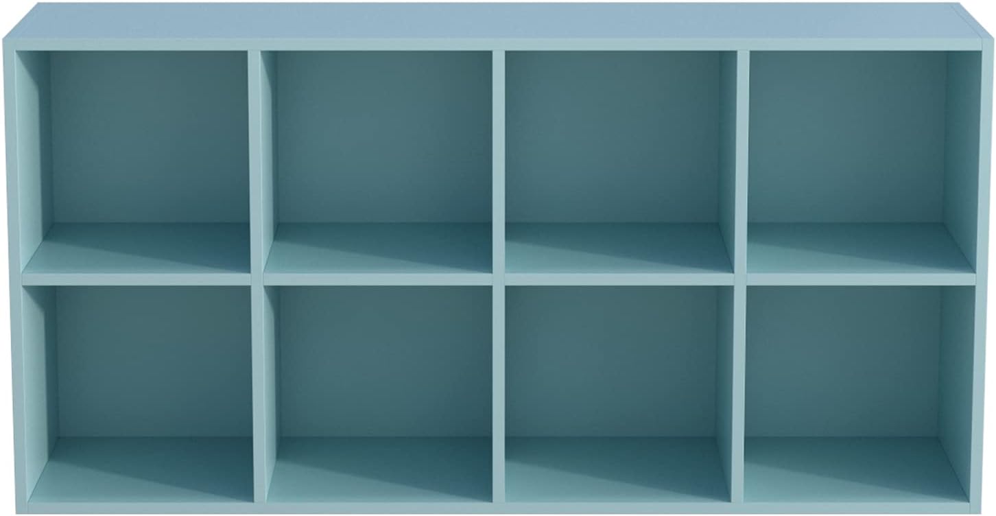 8-Cube Storage Shelf Bookcase - Wooden 4-Tier Floor Standing Open Bookshelf, Modern TV Stand up to 55 Inchs for Home and Office, Light Blue