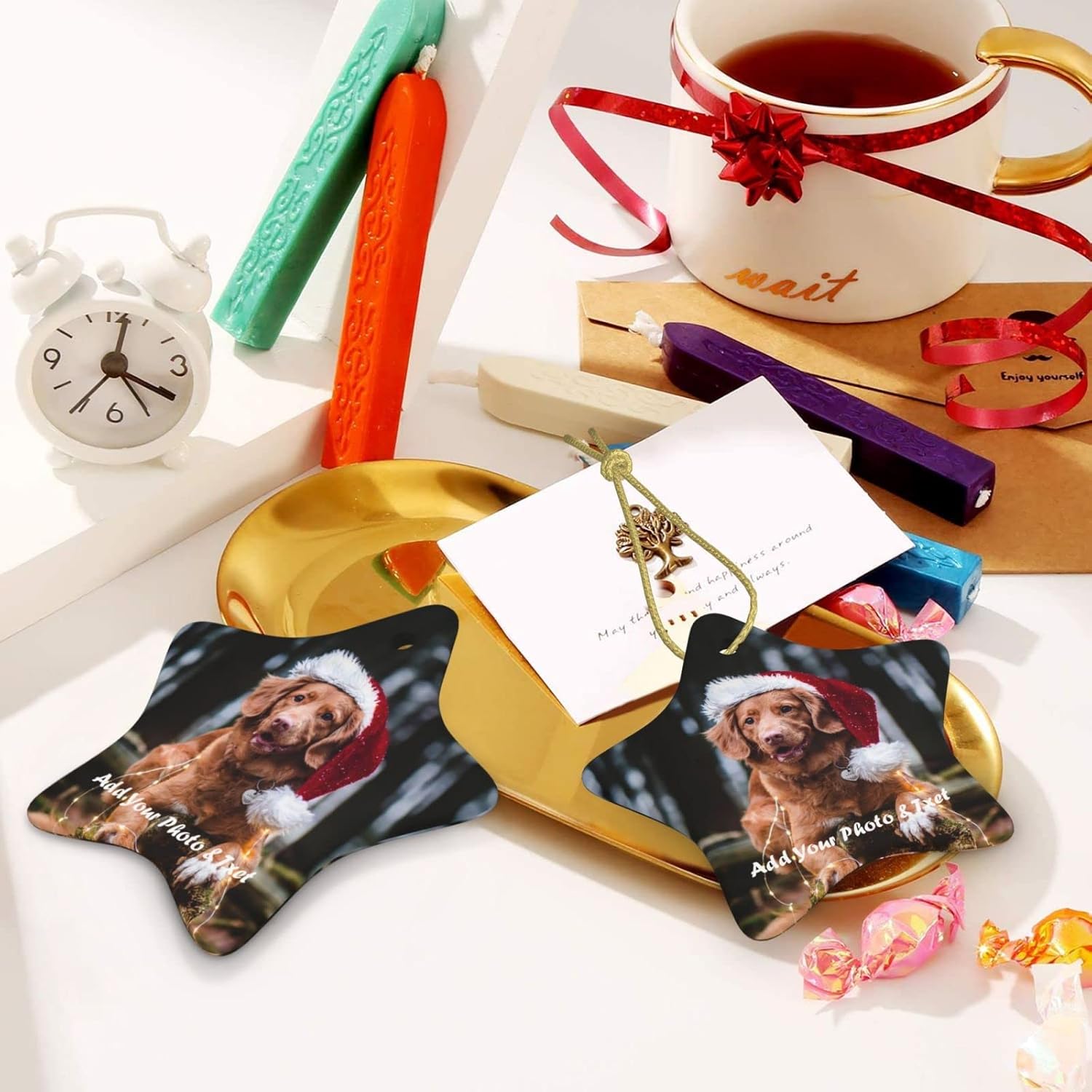 - 📷 Design your own personalized christmas ornaments! Upload high-definition images, the clearer the image, the better the printing effect.