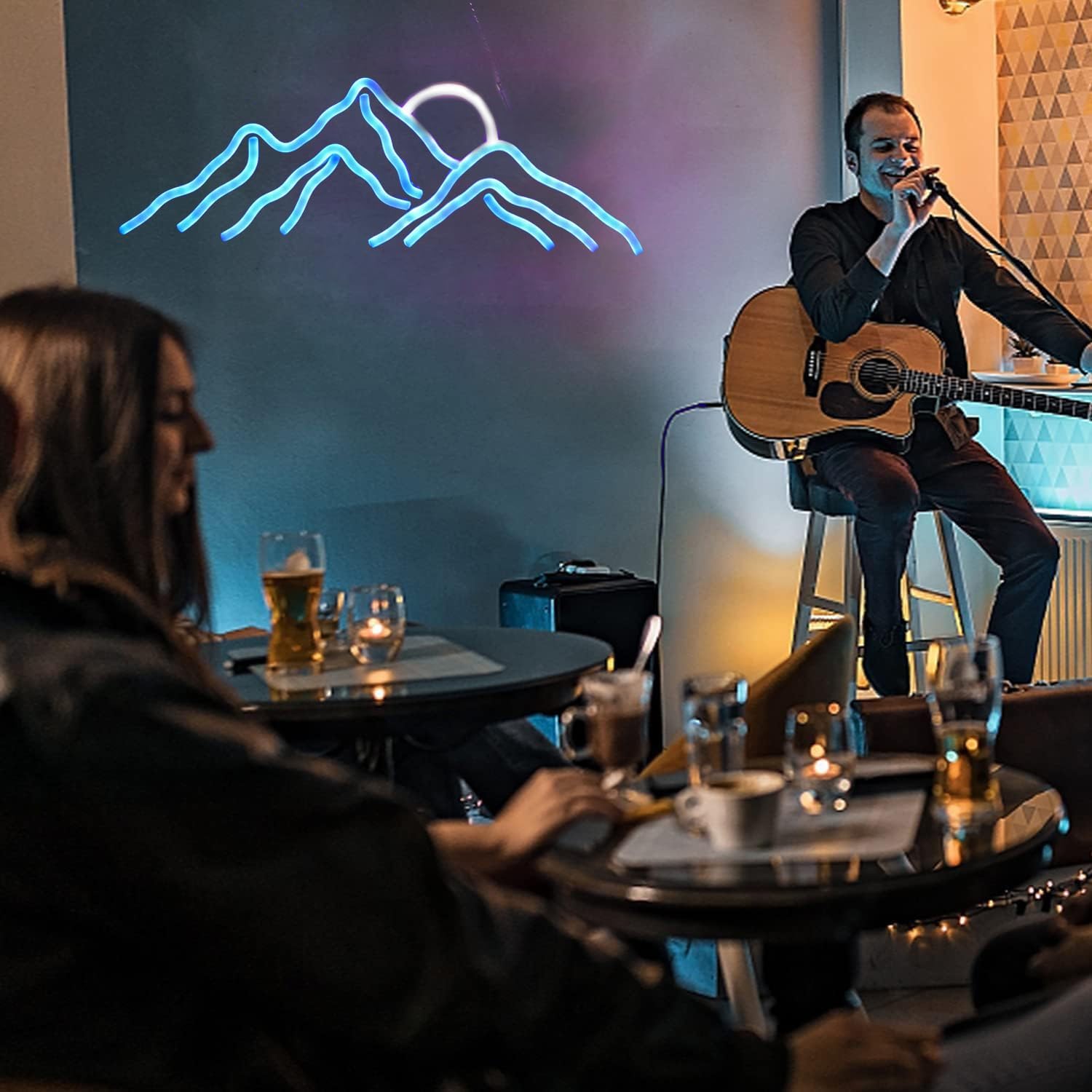 Ulalaza LED Decorative Lights USB Mountains Sunrise Sunset Led Neon Signs Home Decoration Wall Art Holiday Gift Brightness Adjustable 16.5''x11.8''