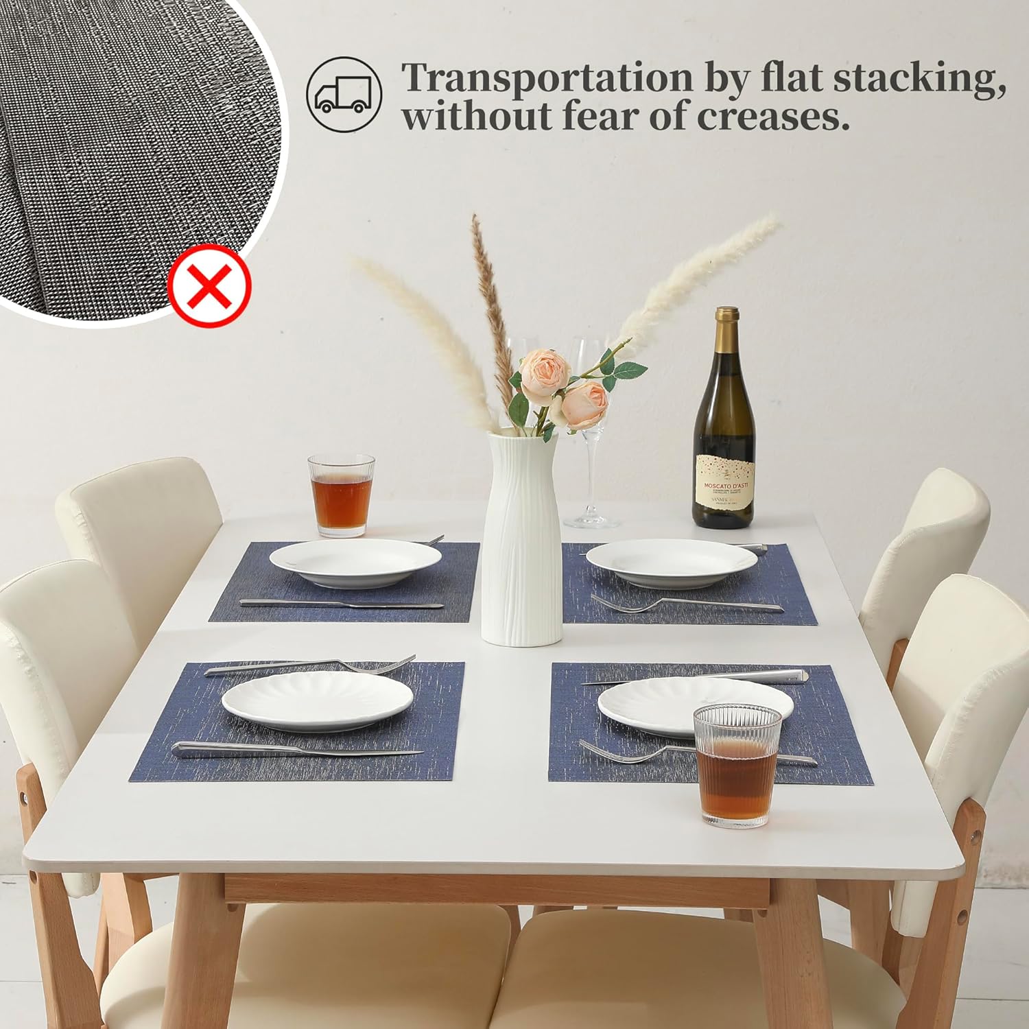 Leetaltree Denim Blue Placemats Set of 4 - Heat Resistant Non-Slip Place mats for Dining Table, Washable Durable PVC Vinyl Woven Table Mats(Denim Blue, 4)