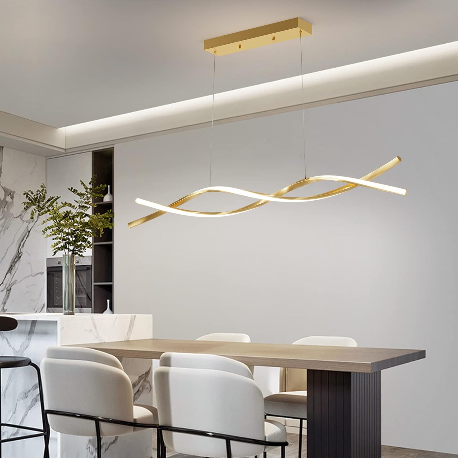 - Multiple Shapes :This linear dining light has 2 adjustable wires, simply press the black button connecting the wires to the shade to adjust the height, perfectly adapting to the height of the ceiling to meet your various needs.