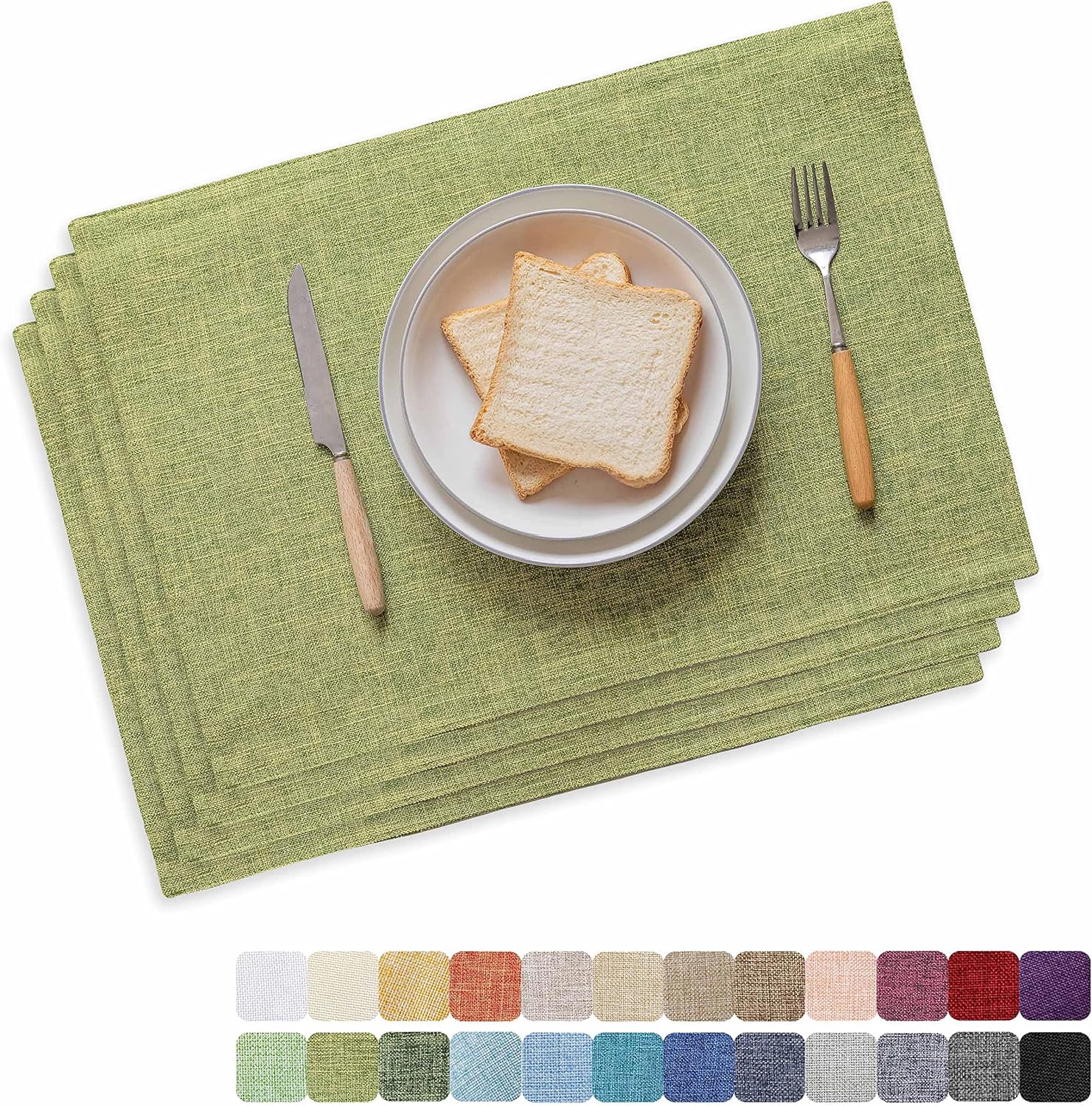- Package: included 4 pieces of placemats; Size in :13" x 19" (33cm x 48cm),All placemats are cut and sewn by hand and maybe 1 inch error. 16 Color Options.
