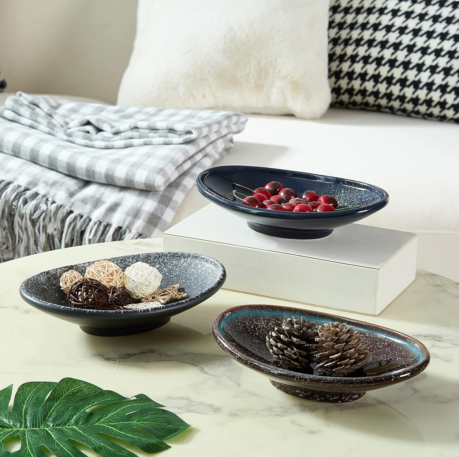 - [Multifunction] You can fill it as a display bowl with decorative items, small collectibles, potpourri, stones, ball, candles or mementos, that will make a beautiful addition to any room or table. Even empty, this bowl serves as a stylish accent on your entryway, nightstand or coffee table. It is also wonderful as trinket dish, key bowl or candy bowl. As a perfect catchall holder, it is suitable for holding soap, coins, nuts, ring, jewelry and so on.