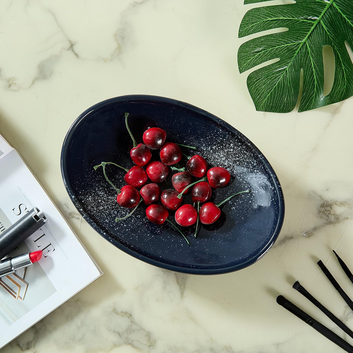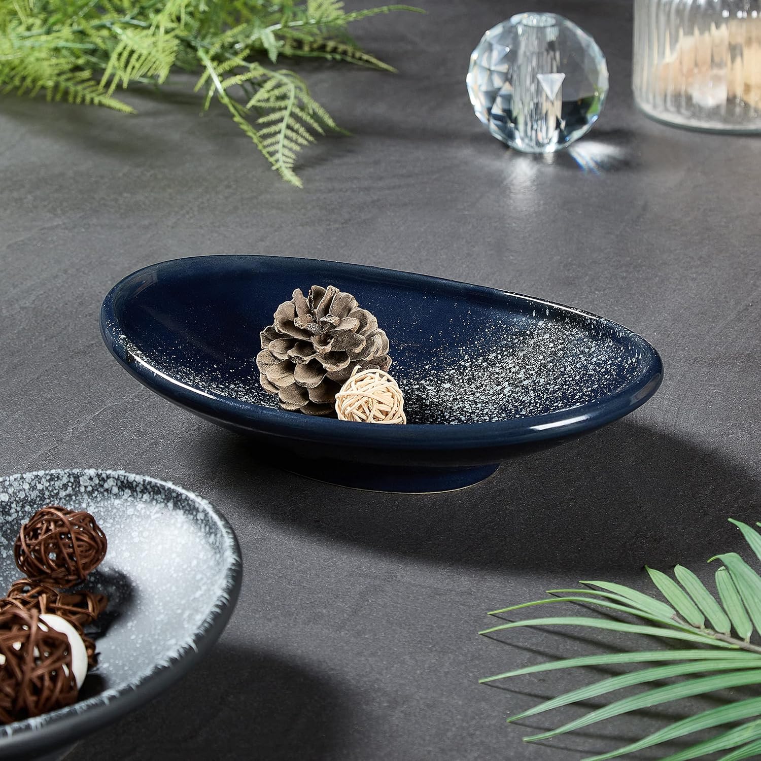 - [Artisan Design] The simple oval ceramic bowl with glaze layer is an exquisite artistic decor. In the blue bowl, the magical Starrysky Pattern with exquisite details is full of beauty of the nature and geometry. It is a perfect accent piece that fitting well into a modern or vintage décor style. Suitable Gift for familiy birthday, weddings, party and special occasions.