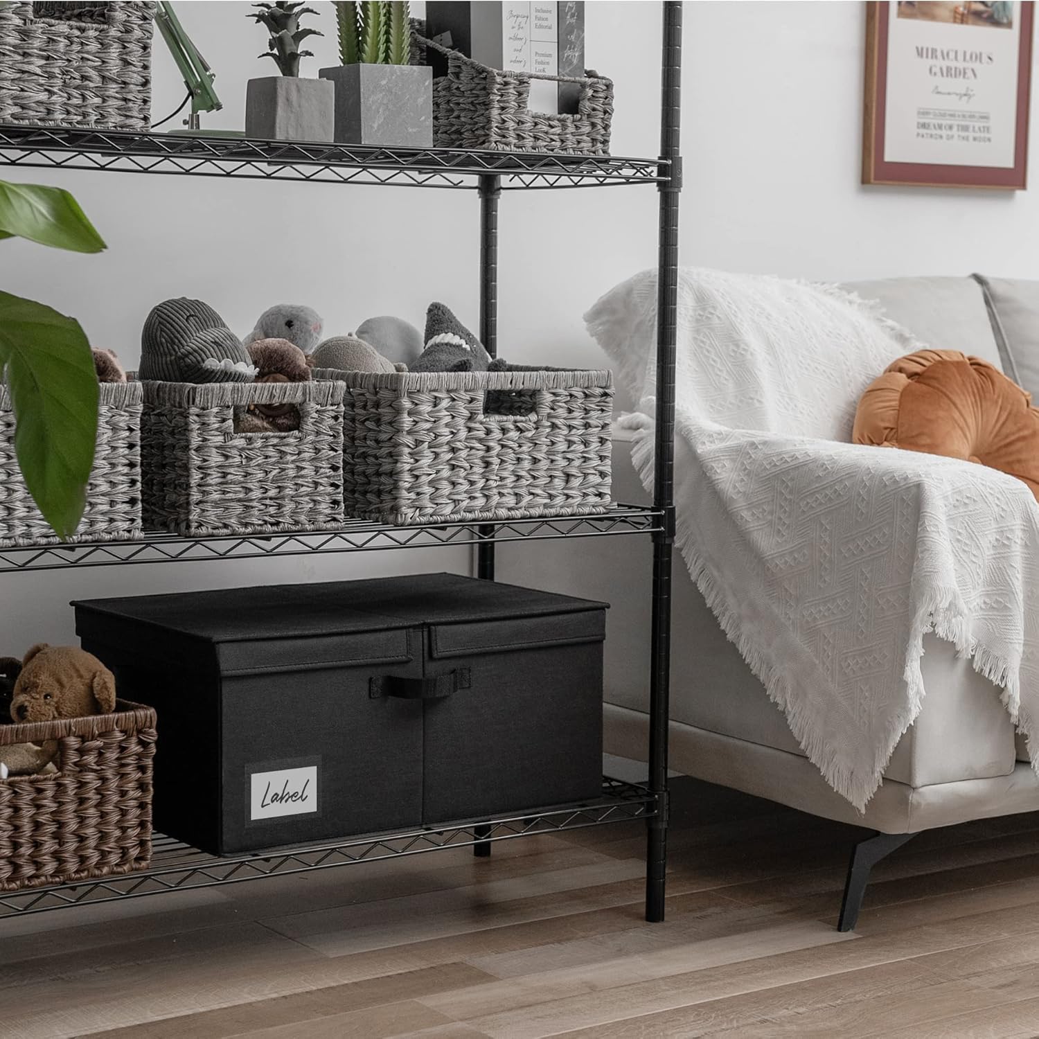- 【Versatile Function】The large fabric storage box with lid is perfect for organizing the closet, shelf, bedroom, play room, living room, wardrobe, laundry room, office, RV, and camping.