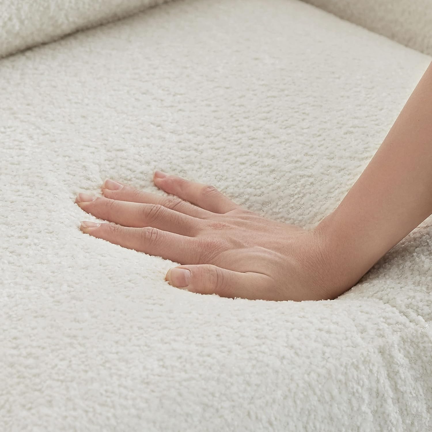 Modern Accent Chair for Living Room, Upholstered Armchair with Boucle Fabric, Single Sofa Chair with Solid Wood Legs, Boucle, White