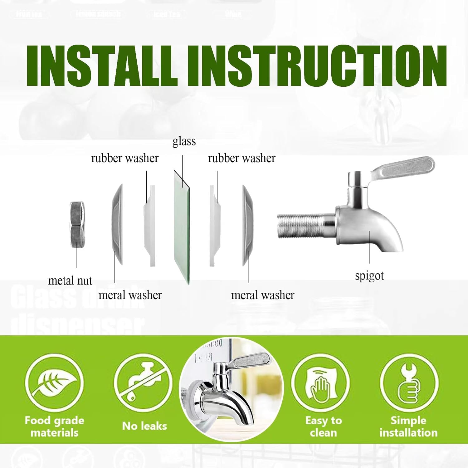 - Package Include:2 Glass Drink Dispenser ,2 Stainless Steel Spigots and Metal Bracket,1 Orange Ring Used As A Wrench.