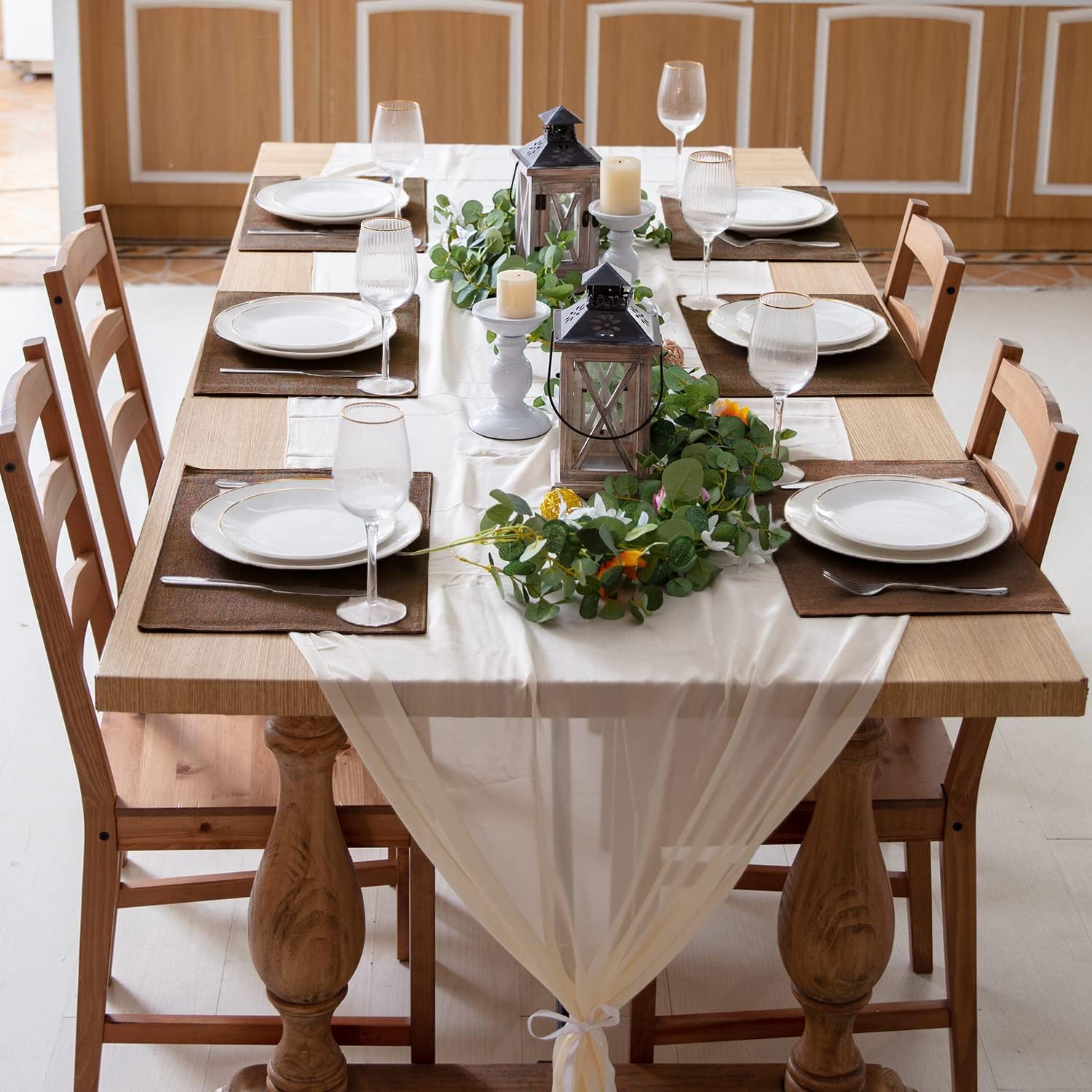 - [RUSTIC LOOKING, PERFECT FOR CHRISTMAS & NEW YEAR & THANKSGIVING DECOR] Made by textured polyester fabric and designed like linen, our table mat has a rustic and cozy look. It effortlessly enhances your table settings and adds a warm, natural touch to your Christmas, New Year and Thanksgiving dinner party, making it perfect for the season.