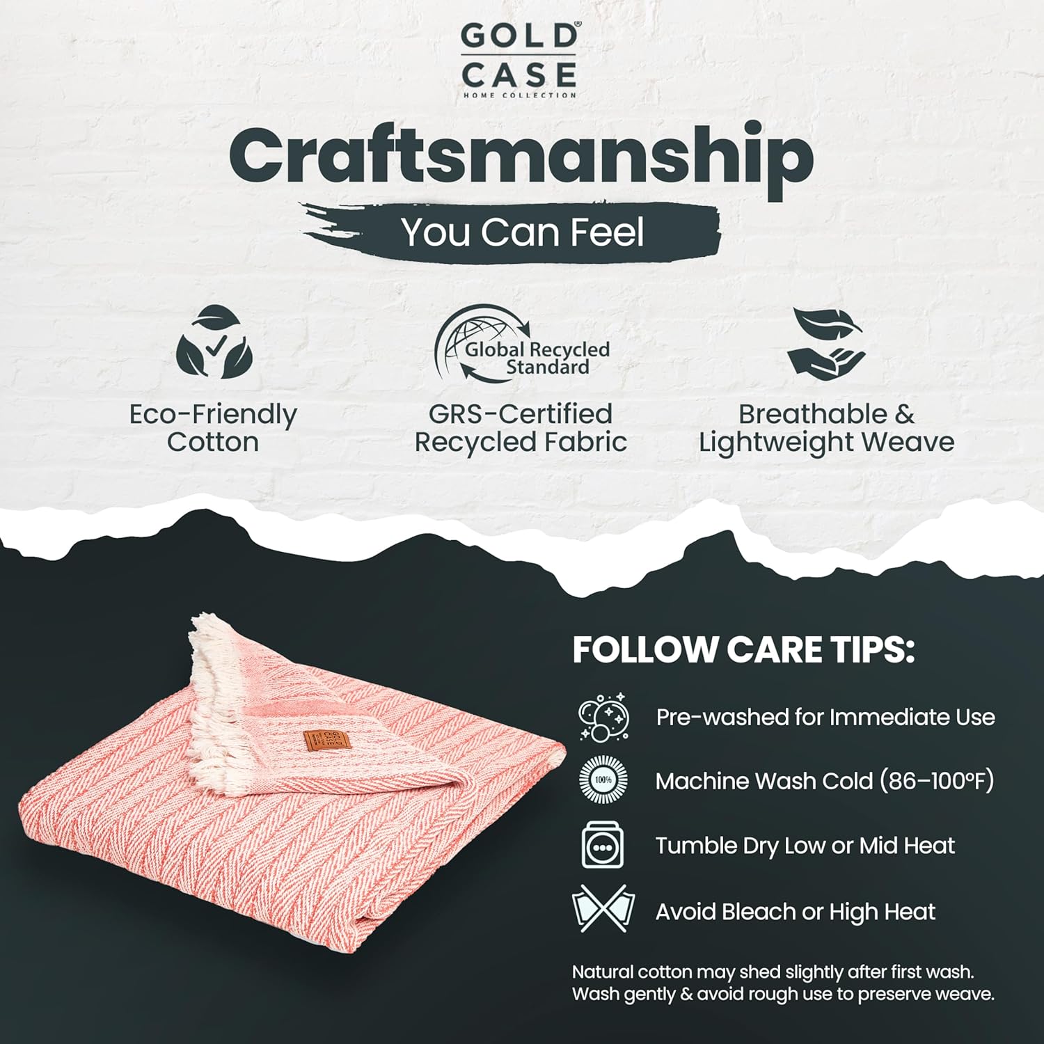 Gold Case Throw Blanket for Couch – 100% Recycled Turkish Cotton Blankets & Throws – Elegant Decorative Throw Blankets for Living Room Sofa – Woven Throws for Couch – Vintage Orange – 50x60