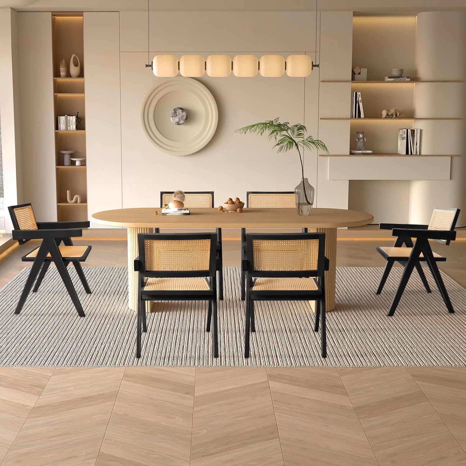 Rattan Dining Chairs Set of 6, Kitchen Chairs Cane for Dining Room, Black