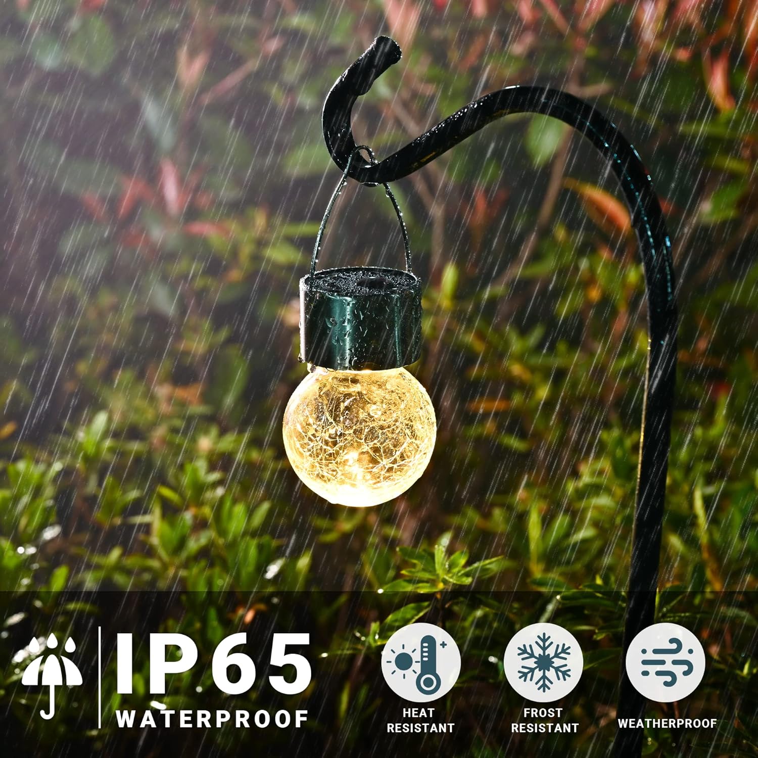 - High-Quality:Outdoor solar lights are made of stainless steel, glass and high-strength ABS plastic. IP65's waterproof rating enables it to work well in severe weather, including rainy days and light snow days