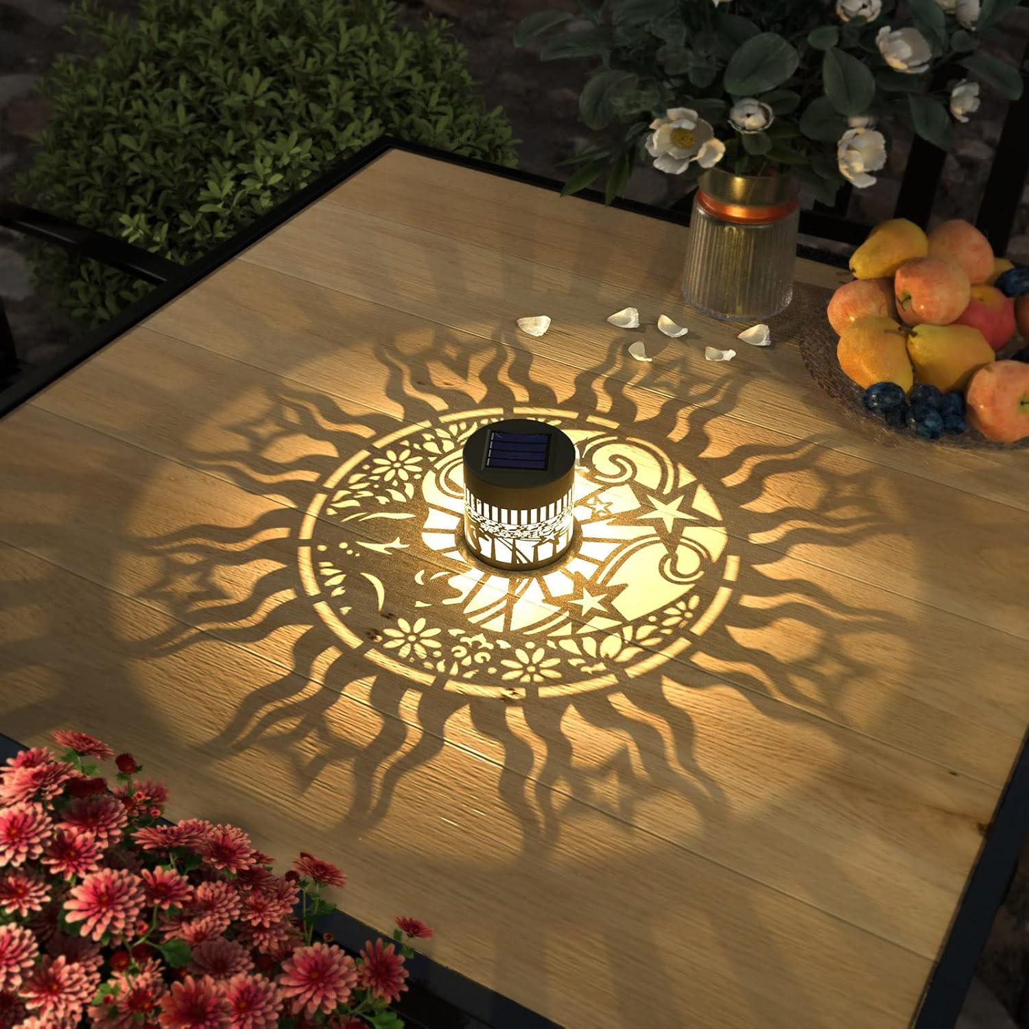 4 Pack Solar Fence Lights Metal Solar Powered Outdoor Wall Deck Lights Sun Moon Theme Waterproof Fence Light for Garden Post Patio Backyard Yard Decor (Face, 4 Pack)