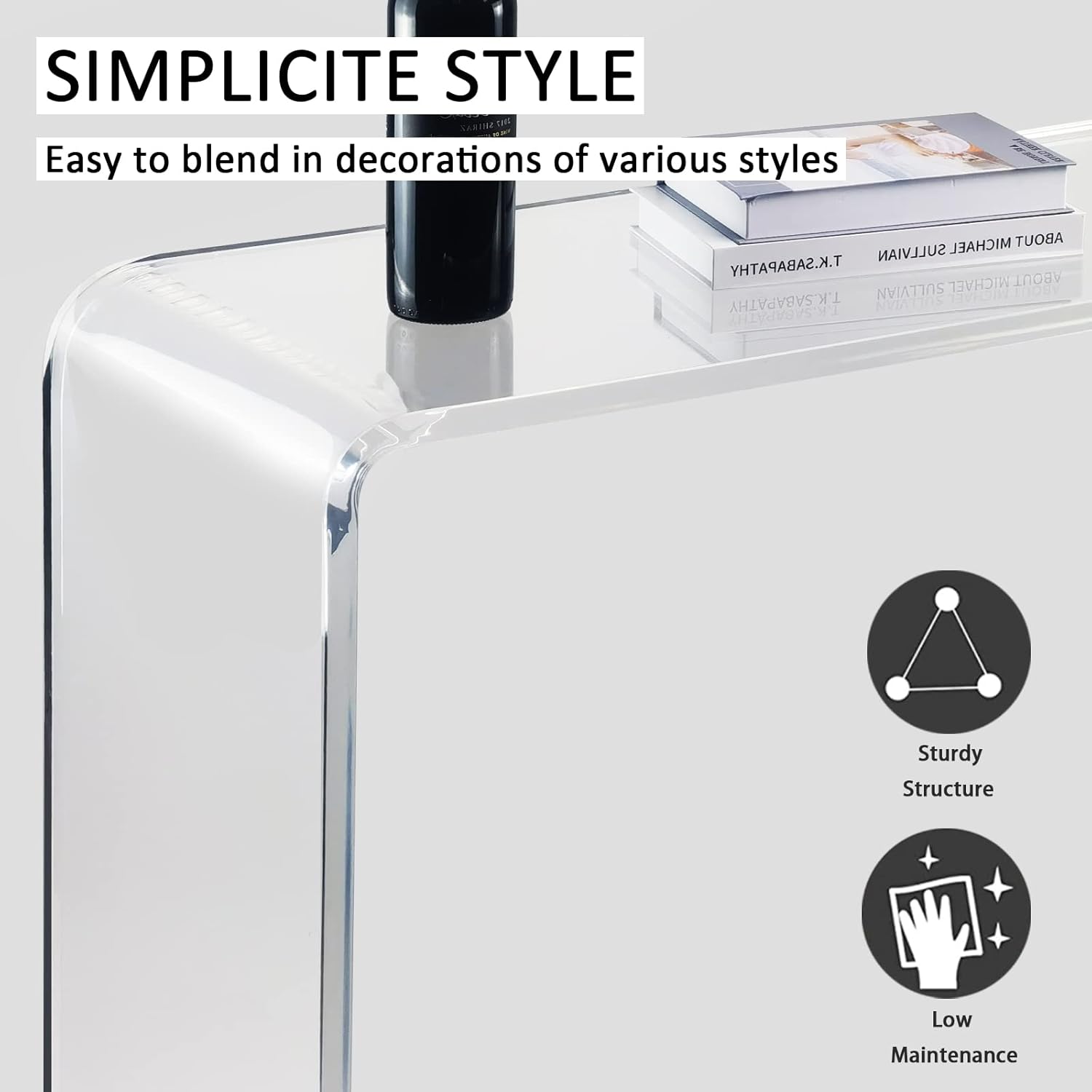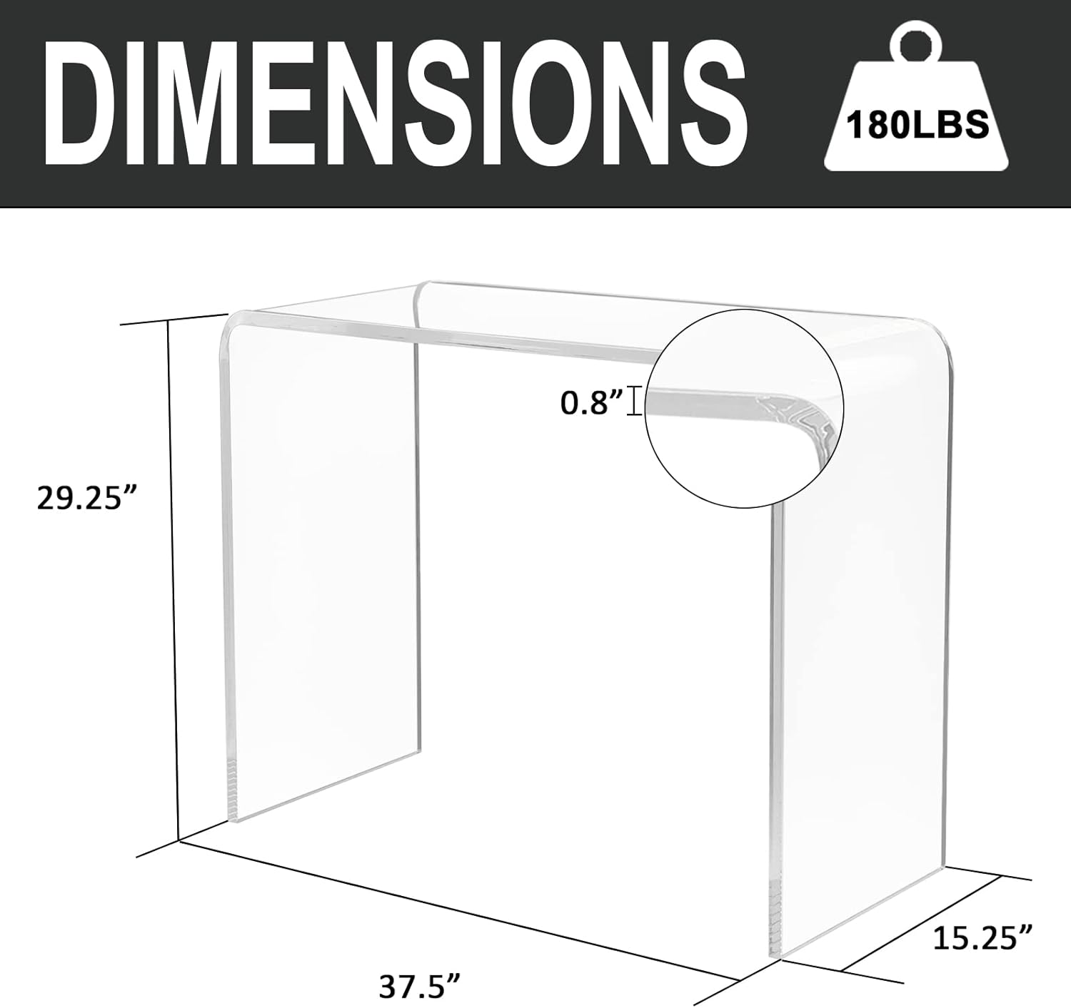 Acrylic Console Table, 37.5” L Thick Modern Entryway Table for Hallway, Living Room, Clear Acrylic Desk, 37.5” W x 29.25” H x 15.25” D, 220LBS Weight Capacity.