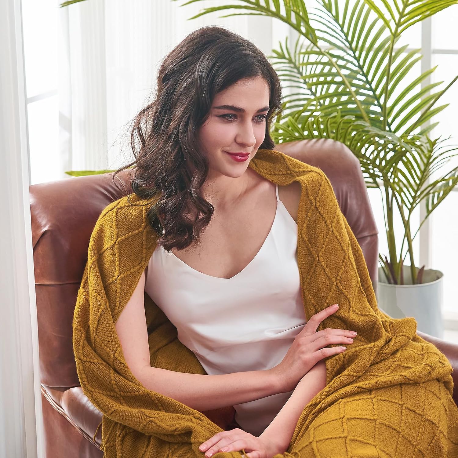 - 【GIFT IDEAS】: Special knitted diamond patterns add a unique accent to your room and people draping it as a shawl. Very suitable for tasteful homeowners. Throw blanket for women, classic but not too tacky as a housewarming gift. Tips: Due to different lighting, display settings, or resolutions, the difference in color happens. We are dying to show the color. To do so, one of the images shows the color difference in different lighting. Hope these instructions would help you to buy a throw.
