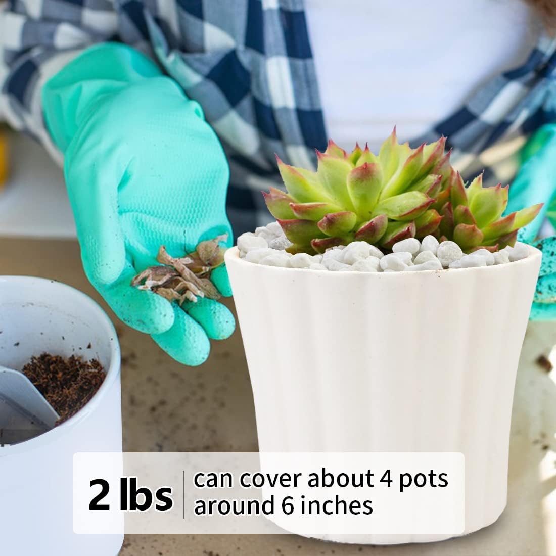 - 【Gravel Pebbles Size】These stones are packaged in a 2 pounds bag. The size is about 1/5 inch, it is perfect for succulent and cactus plants, as well as any vase or terrarium