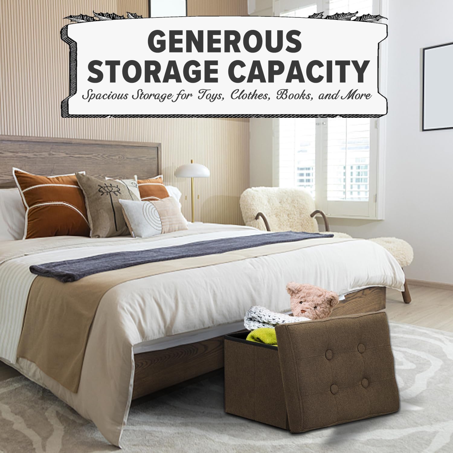 LINMAGCO Ottoman Storage Ottoman with Storage Small Foot Rest Stool Under Desk Stool Short Folding Footrest Linen Cloth Brown 16X12X12IN