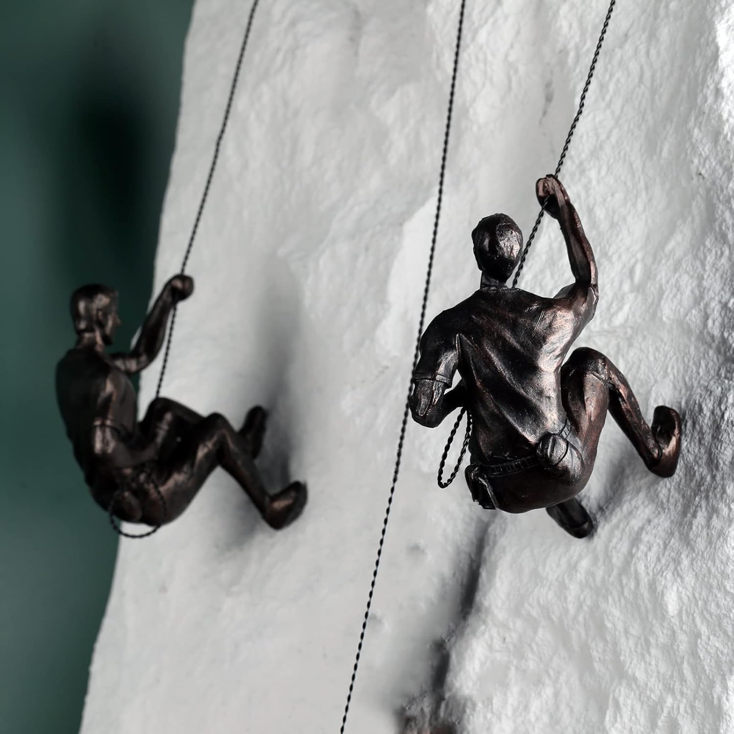 - Decorative statue of rock climbers: modern design, the image of a person climbing upward, symbolizes the fearless power of rock climbers. Rust wall art, interesting design sculpture decoration.