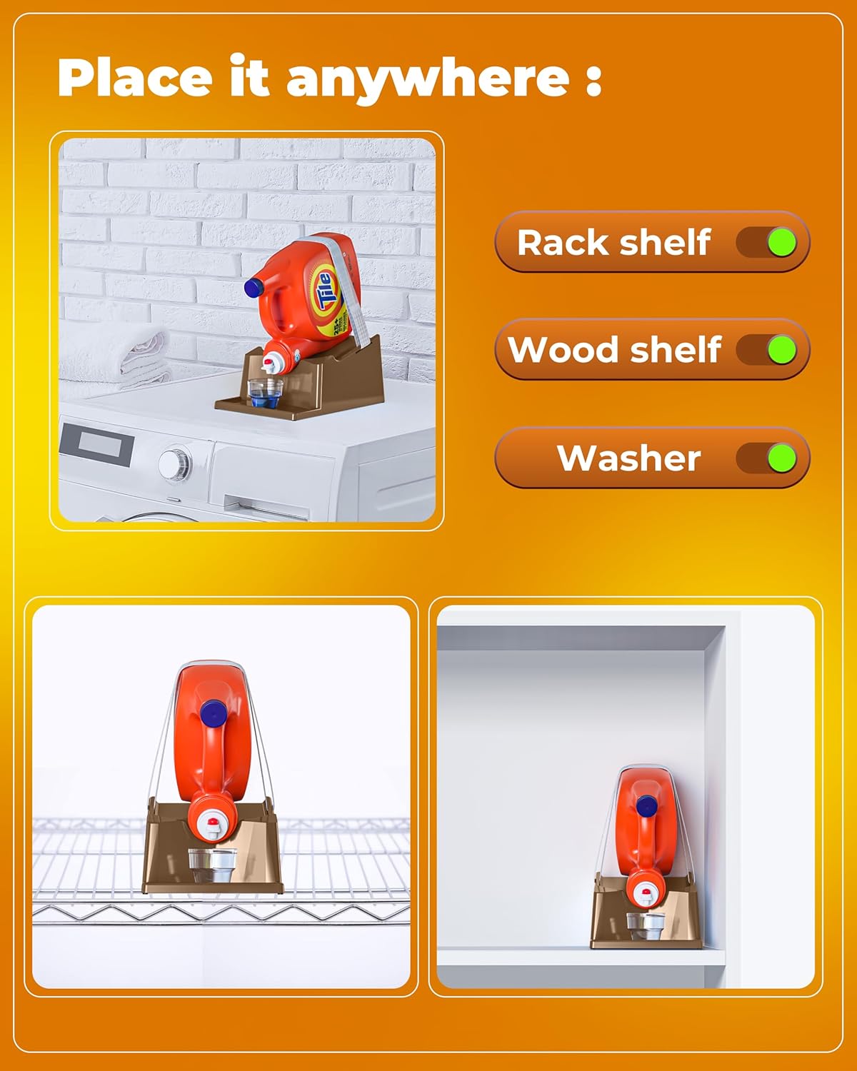 - [Effortless Soap Dispensing:] The angled design of our laundry soap organizer allows for easy soap pouring without the need to tilt or lift heavy detergent bottles, saving you time and effort during laundry.