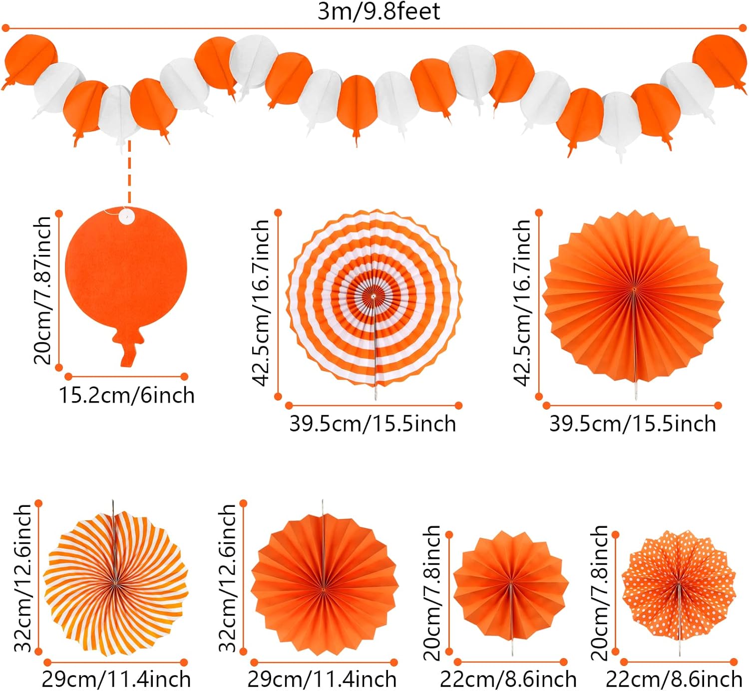 Orange Party Decorations, Papar Fans Pompoms Fans Garlands for Halloween Birthday Bridal Baby Shower Wedding Graduation Spring Festival Party Decorations