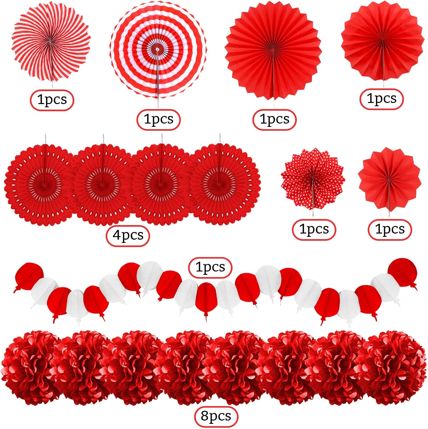 Red Party Decorations, Papar Fans Pompoms Fans Garlands for Birthday Bridal Baby Shower Wedding Graduation New Years Valentine's Day Party Decorations