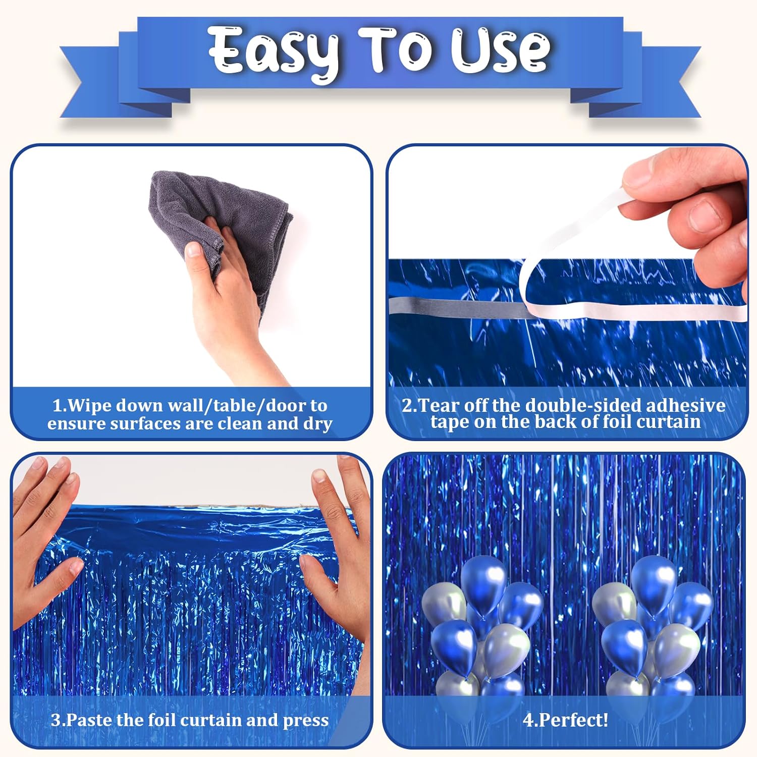 - Premium Material: This blue foil curtain backdrop is made of stable tinsel, non-fading, stay shiny and reusable. Unfold it and then enjoy your glittering party