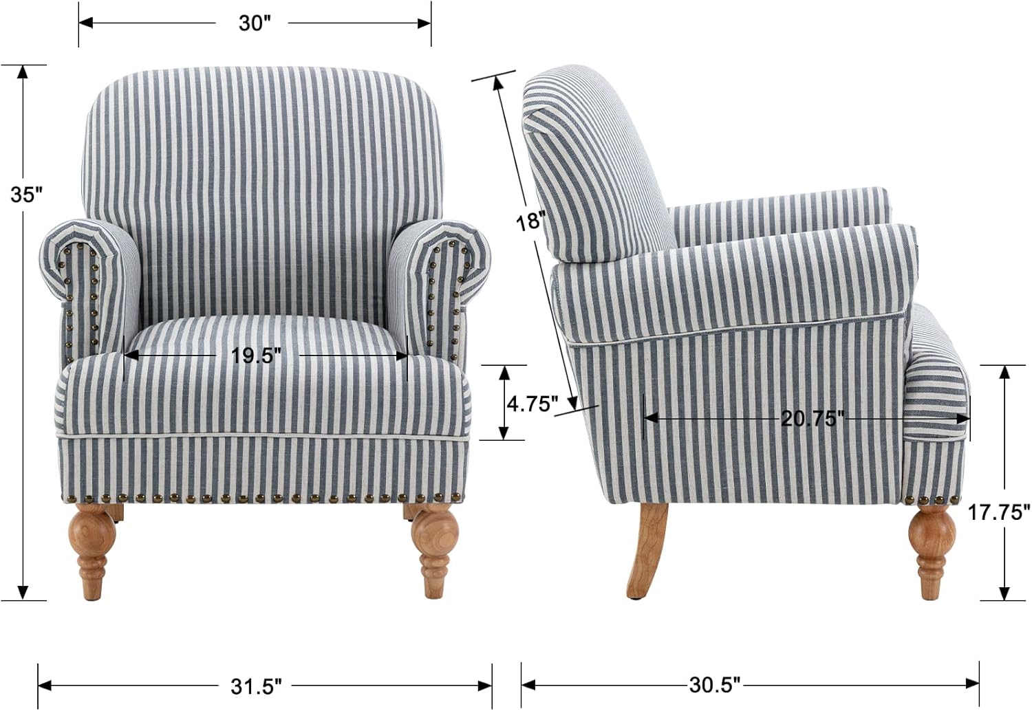 - SIZE & ASSEMBLY - The dimension of this accent chair is 31.5"W x 30.5"D x 35"H, with a 19.5"W x 20.75"D x 4.75" Thick seat. The packaging of the product comes with detailed instruction and accessories