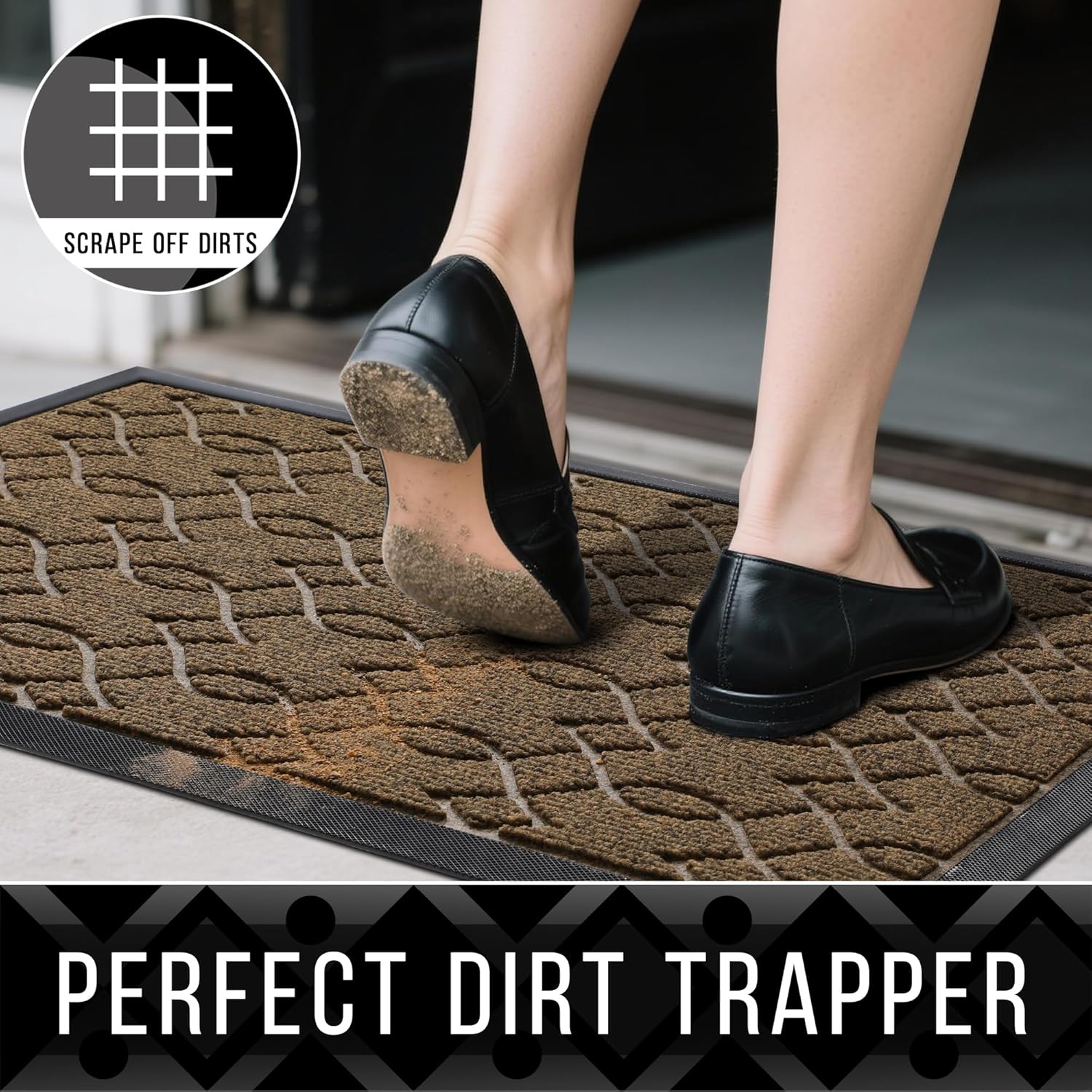 Yimobra Front Door Mat Outdoor Indoor 47x32, All-Season, All-Weather, Heavy Duty Welcome Door Mats Outside Entrance, Non Slip Porch Patio Entrance Mat, Brown