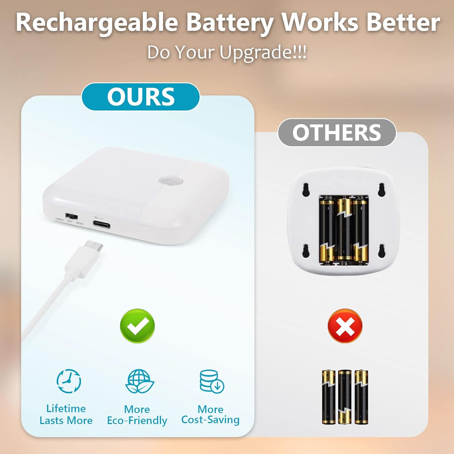 - Rechargeable Night Light: Featuring advanced rechargeable battery technology, this motion sensor night light lasts up to 180 days on a single charge. In comparison to traditional battery powered night lights, it offers greater longevity, energy efficiency, and eco-friendliness. Say goodbye to disposing of old batteries!