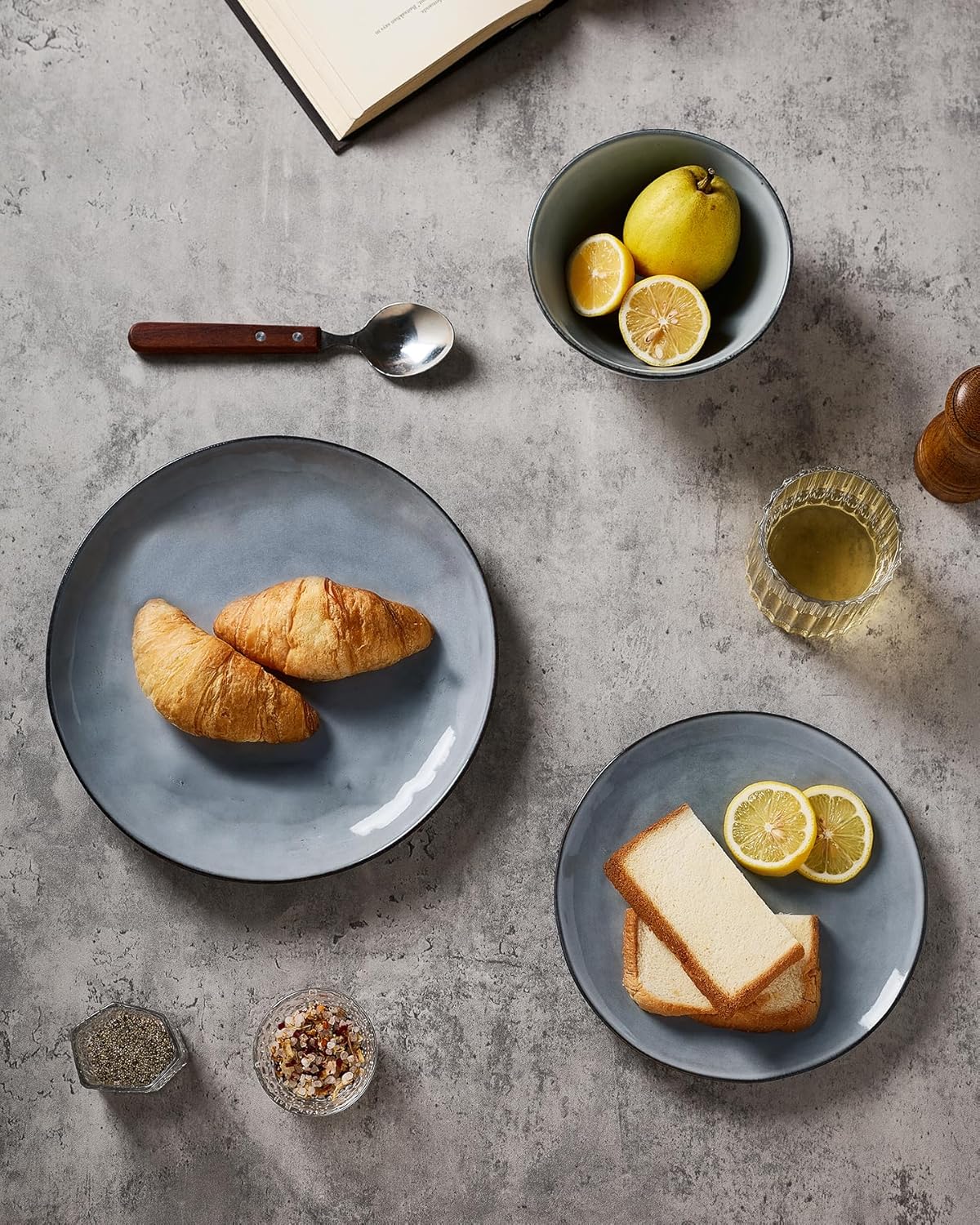 Famiware Dinnerware Sets for 4, Ocean Round 12-Piece Kitchen Plates and Bowls Sets, Reactive Glaze, Microwave and Dishwasher Safe, Scratch Resistant, Grey