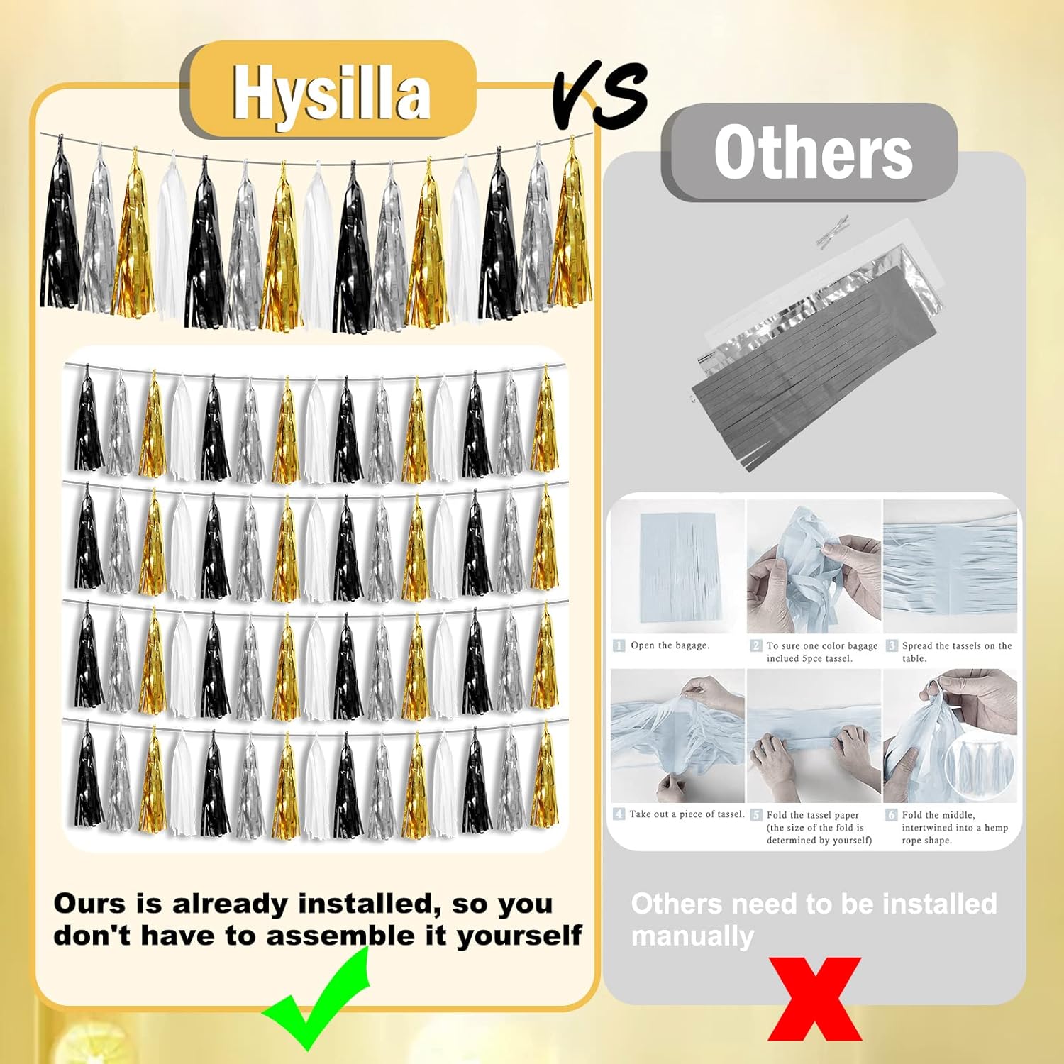 - 【Reusable Tassel Garland Material】: high-quality metallic foil tassel garlands, with the virtue of nice craftsmanship and lightweight, they are reusable and safe, and not easy to fade; They come with white ribbon for hanging, and garland tassels hang perpendicular to the string, and are adjustable to provide you with the option of spreading the tassels out or piecing them closer together.