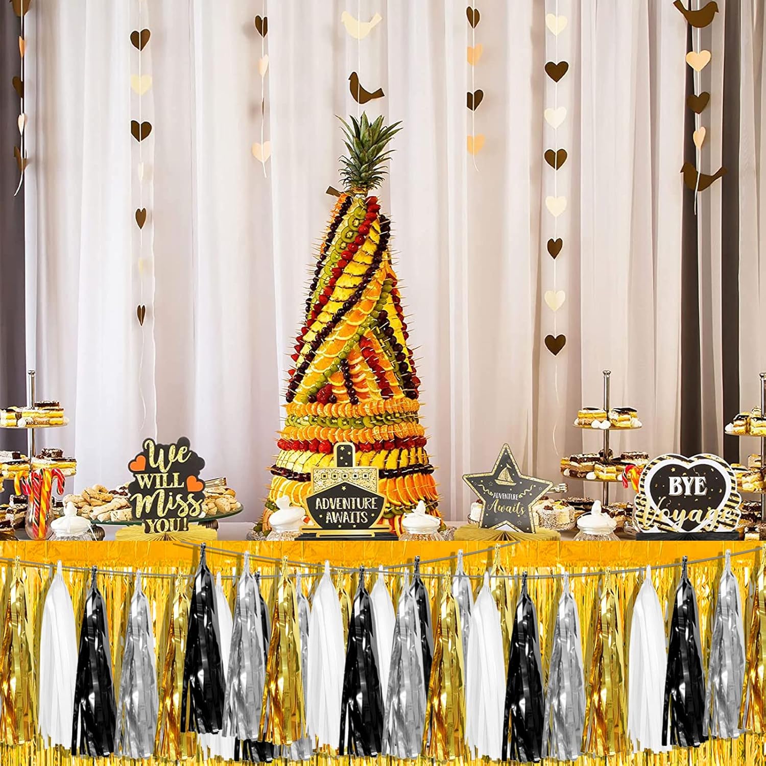 4P Navy-Blue White-Gold Foil Fringe Metallic Tassel-Garland, Tassels Banner Streamers for Parade Floats, Bachelorette, Wedding, Birthday, Halloween, Christmas, Bridal/Baby Shower Party Decorations