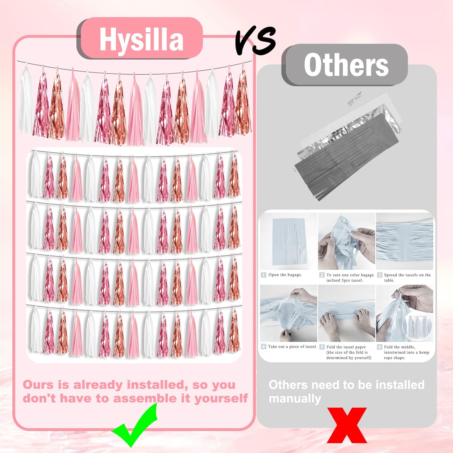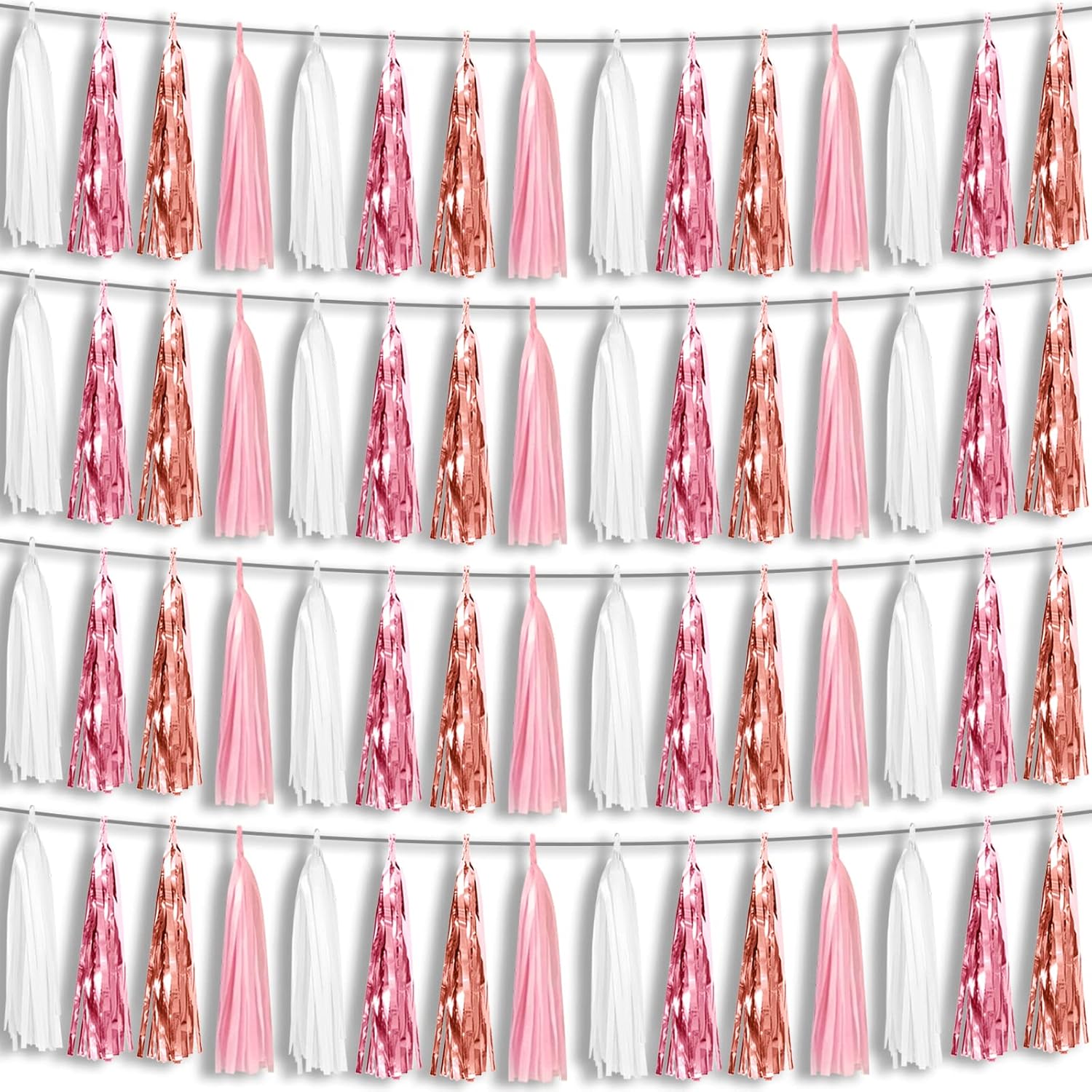 - 【Perfect Party Decoration】The pink white peach rose gold tinsel garlands are designed in a metallic Fringe, bright, and beautiful, at the same time, they shine in the sun, and these gorgeous tassel garlands create a wonderful backdrop or centerpiece for your party space. and bring you, your family, and your friend's good Visual effects. your party many emotional and touching moments where a lot of pictures will be taken and everybody will have a wonderful time together.