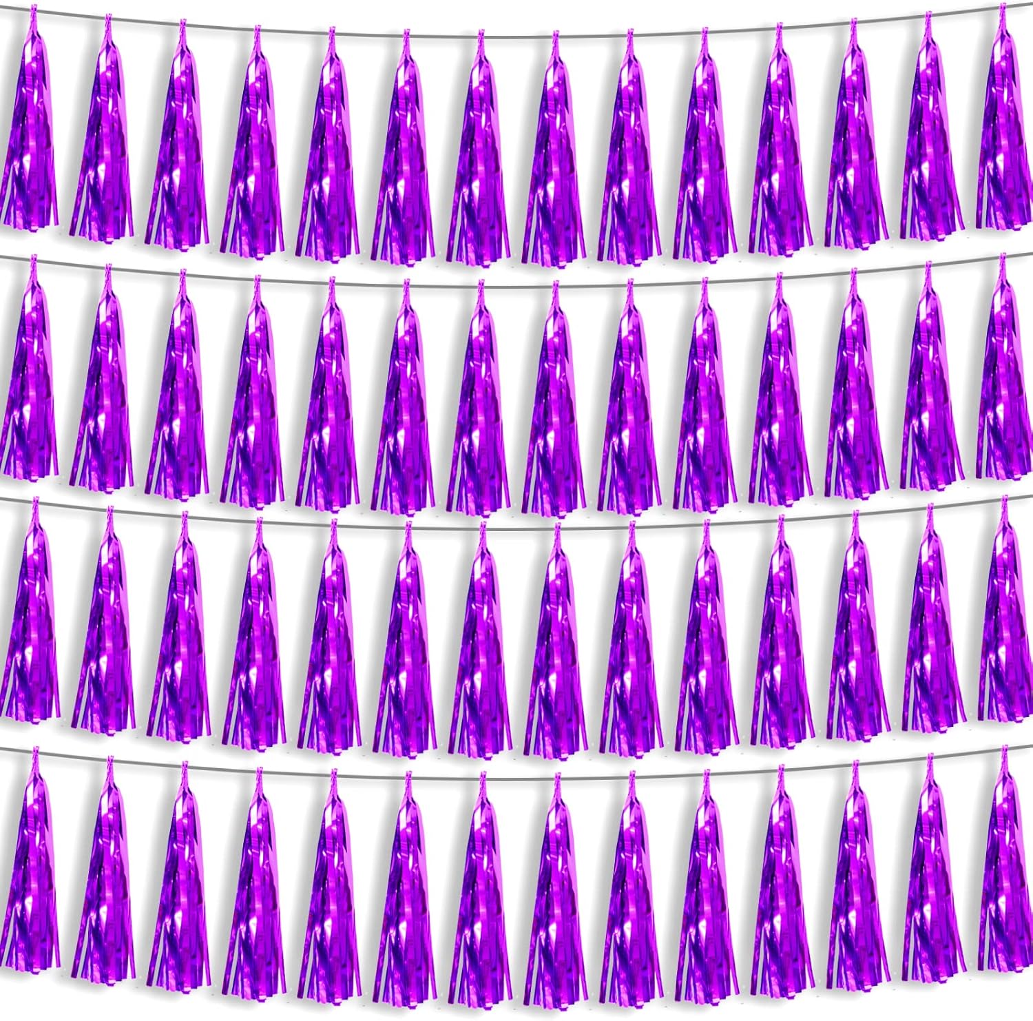 4P Purple Foil Fringe Metallic Streamers Banner Tassel Garland for Parade Floats, Bachelorette, Wedding, Birthday, Halloween, Christmas, Bridal/Baby Shower Party Decorations