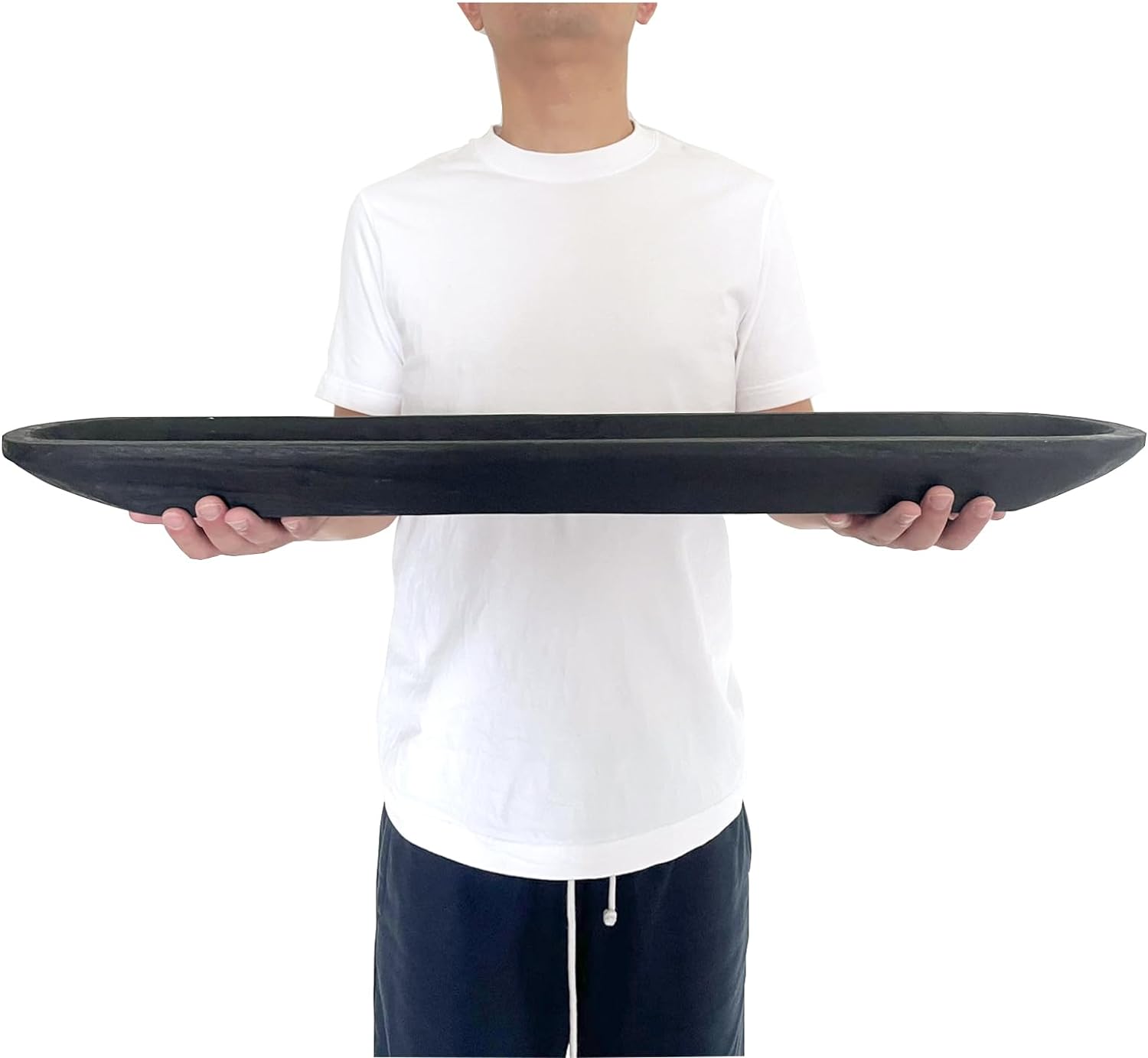 Wooden Dough Bowl Decor, Vintage Wooden Bowl Hand Carved Home Decor for Dining Table Center, Living Room, Kitchen Decor. (30inch black)