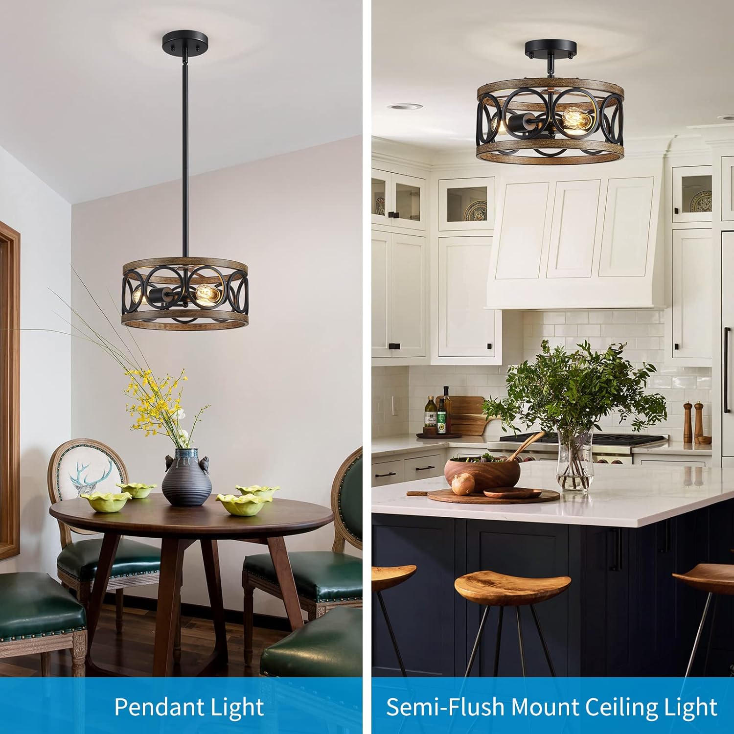 - Exquisite Design: Elevate the ambiance of your farmhouse styled places with this stunning dining room light fixture. The unique open drum frame with antique wood grain and black finish adds a touch of rustic vintage charm to any decor style, from modern to farmhouse. Made of high-quality metal, this chandelier is not only beautiful but also durable, ensuring long-lasting use.