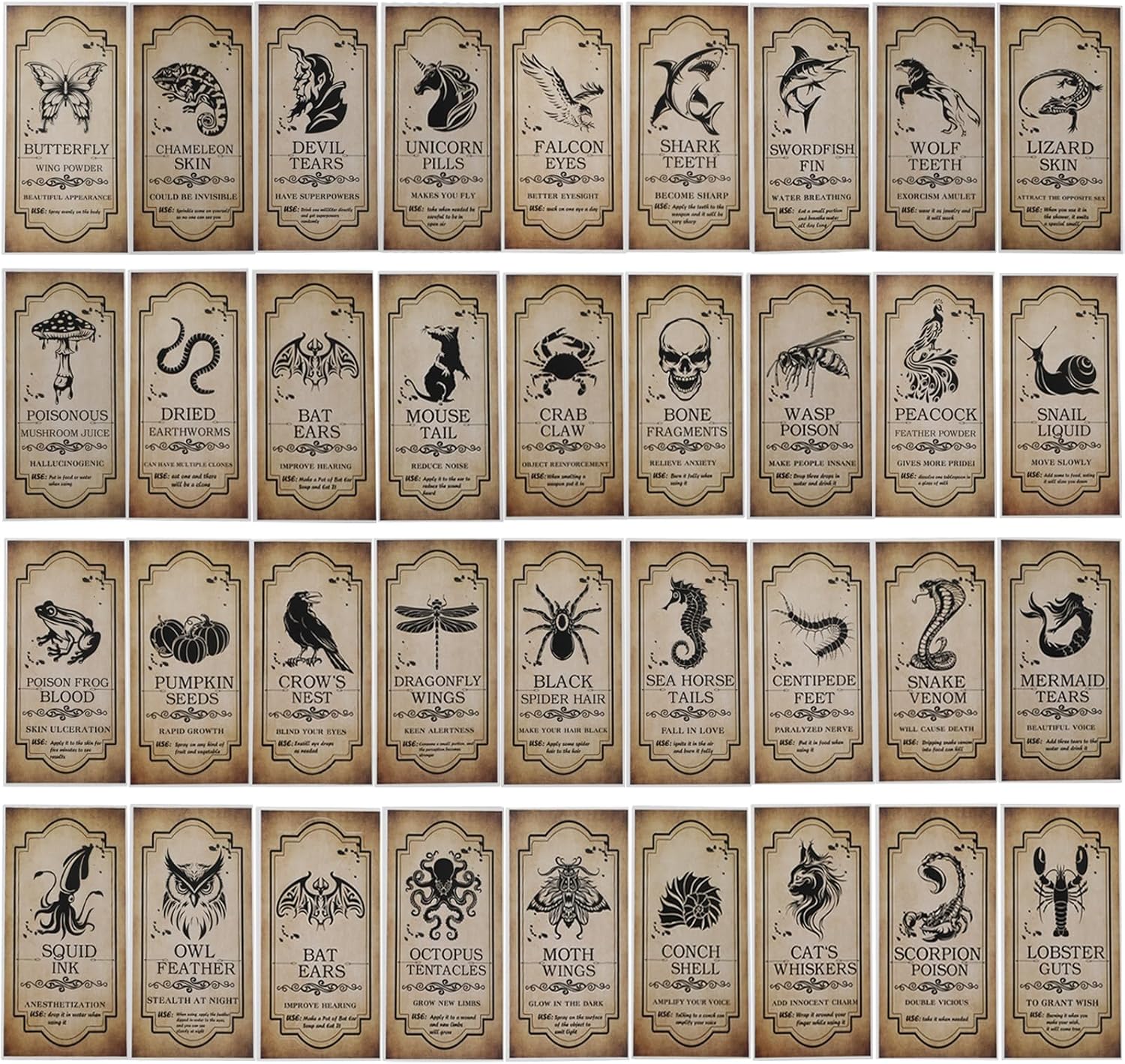 - Wide Application: These assoeted animal potions label stickers are suitable for most types of bottles decorations and can also stick them on gift bags, Halloween party supplies, invitation cards,gift boxes,Halloween cards envelopes, scrapbook,photo albumand so on.