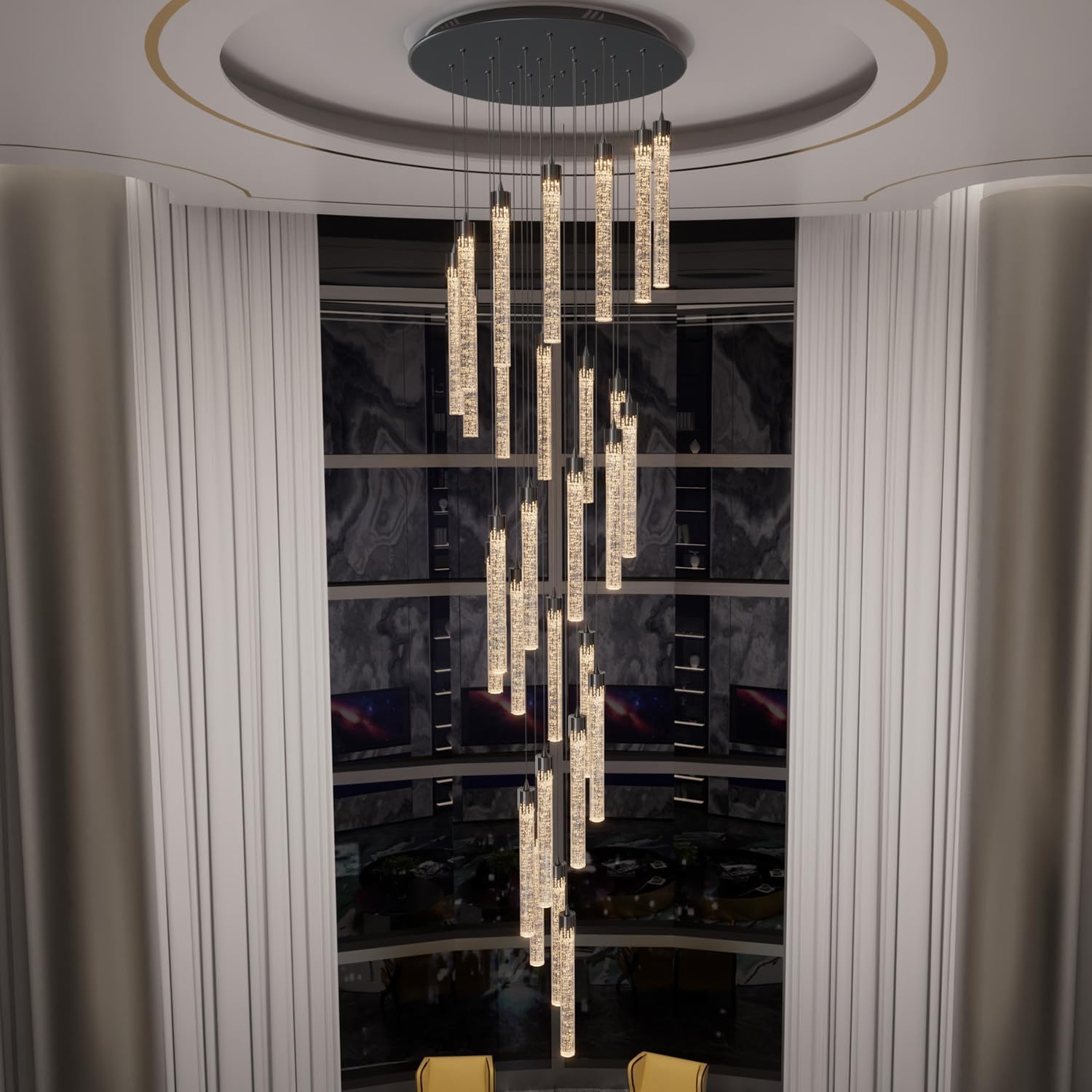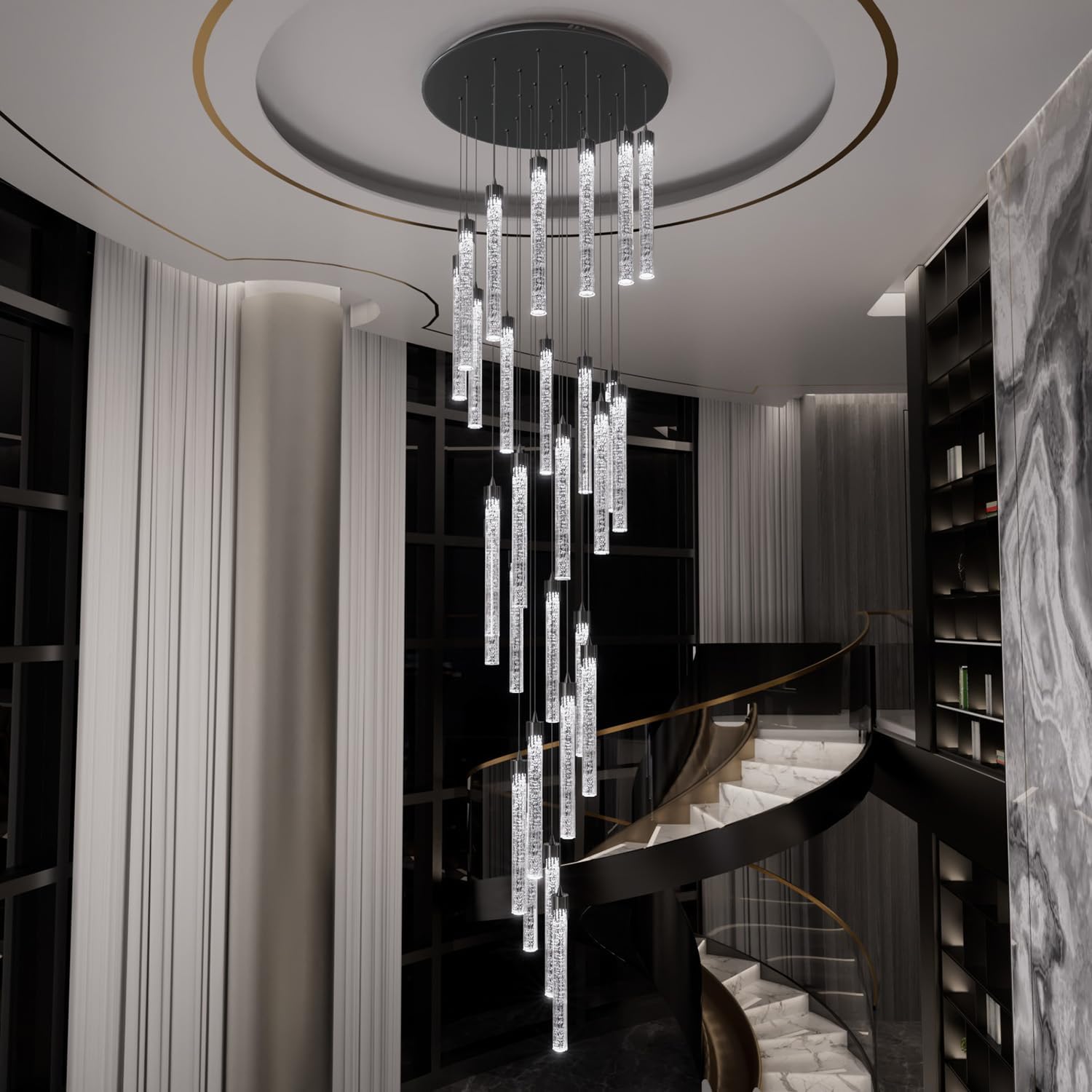 - 【Chandelier's size】 The size is D28" * H157", The pendant rope is adjustable, allowing for a minimum height of 20".Suitable for high-ceiling living rooms, foyers, entryways, dining rooms, stairwells,angled ceiling etc