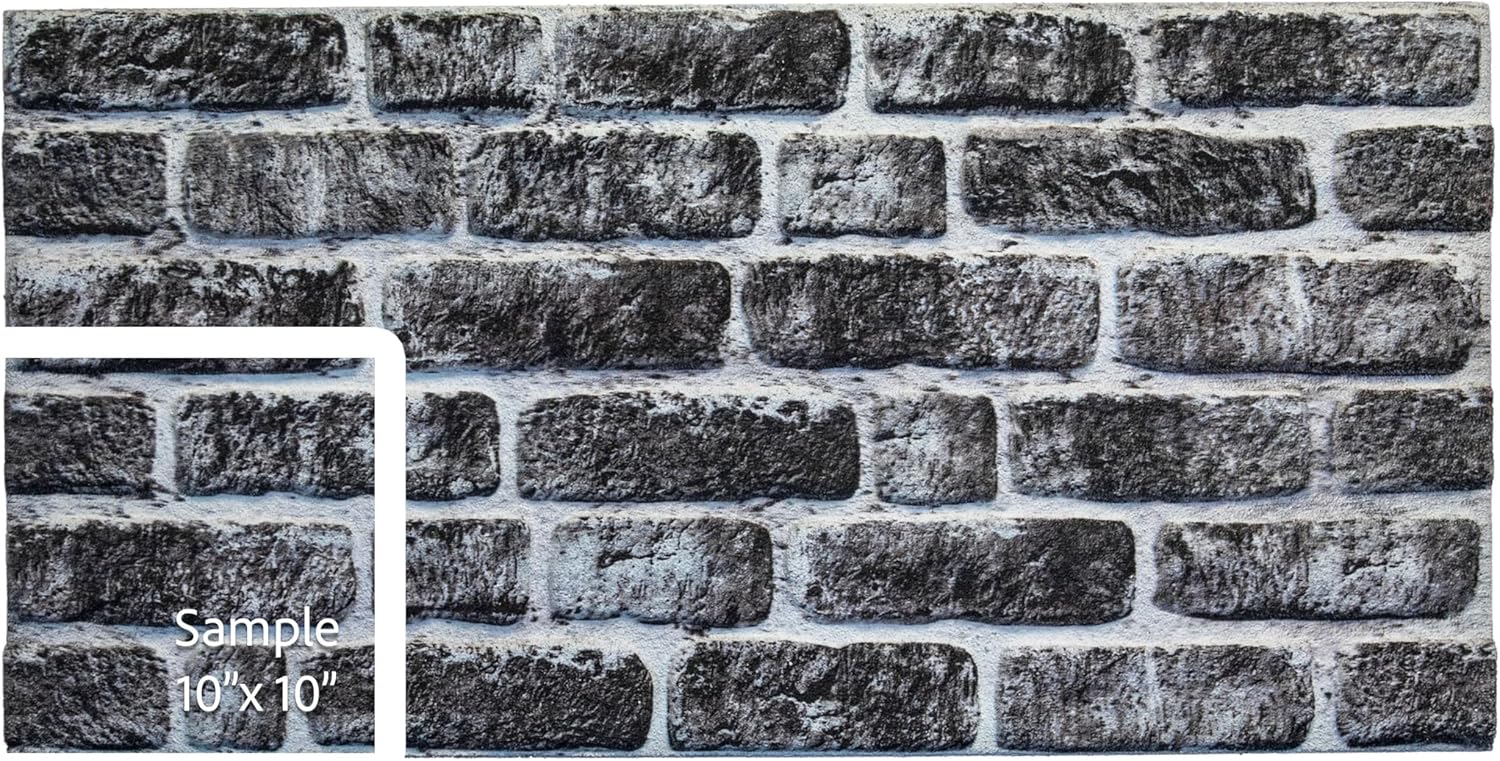 Dundee Deco 3D Wall Panels Faux Brick - Cladding, Charcoal White Stone Look Wall Paneling, Styrofoam Facing for Living Room, Kitchen, Bathroom, Balcony, Bedroom, Sample, Size 10 x 10 in.