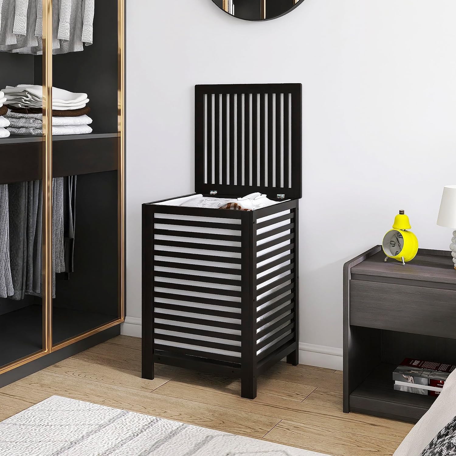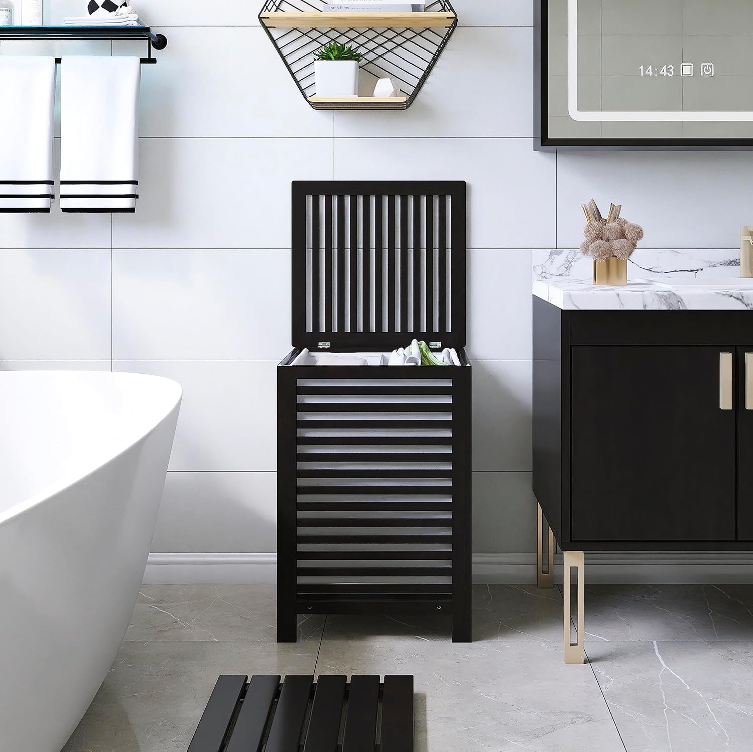 SMIBUY Double Laundry Hamper with Lid, 120L Bamboo Laundry Basket with Removable Liner Bag, 2-Section Clothes Divider Laundry Sorter for Laundry Room, Bathroom, Bedroom (Black)
