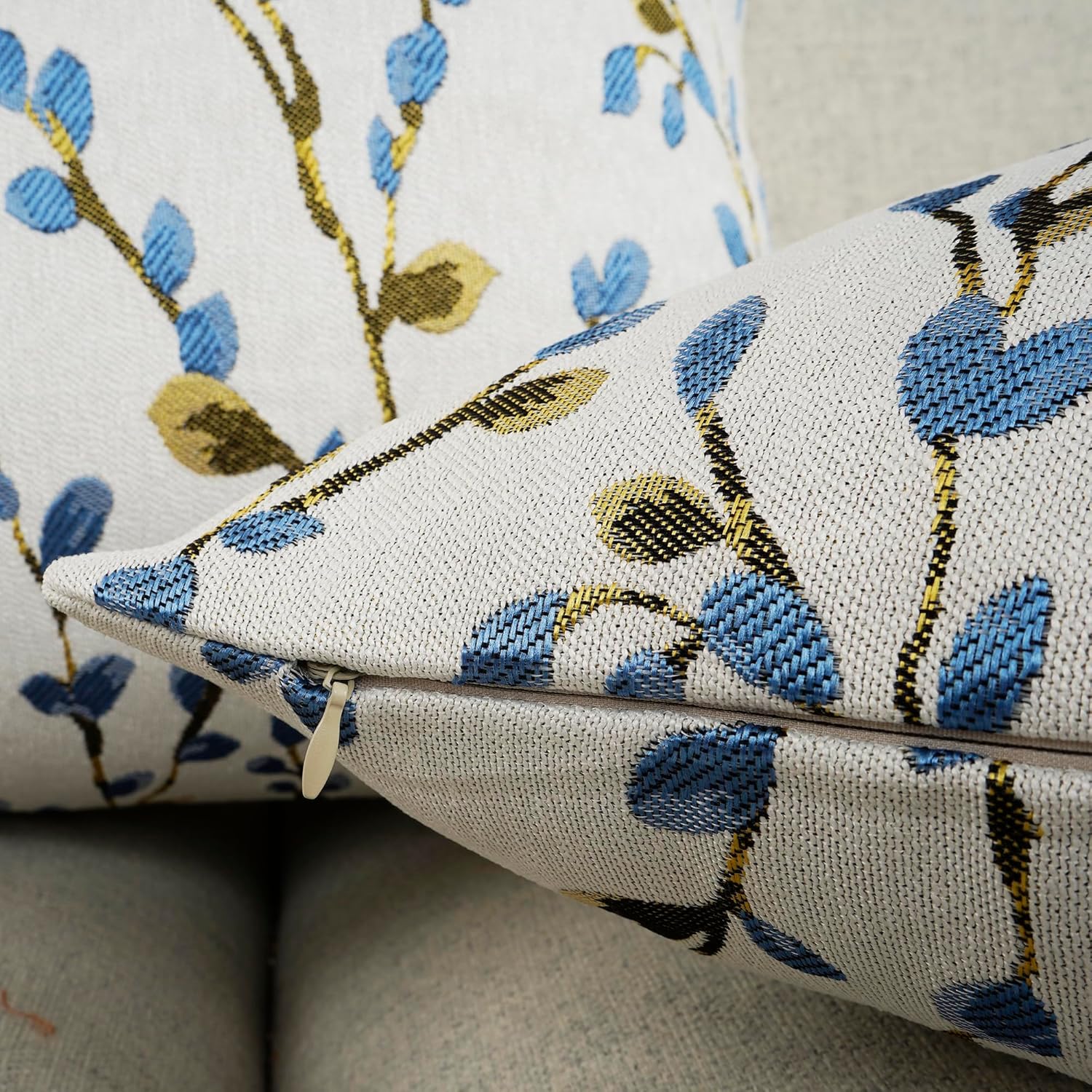 YOUR SMILE Classical Embroidery Jacquard Blue Square Decorative Throw Pillow Case Cushion Cover 18x18 inch